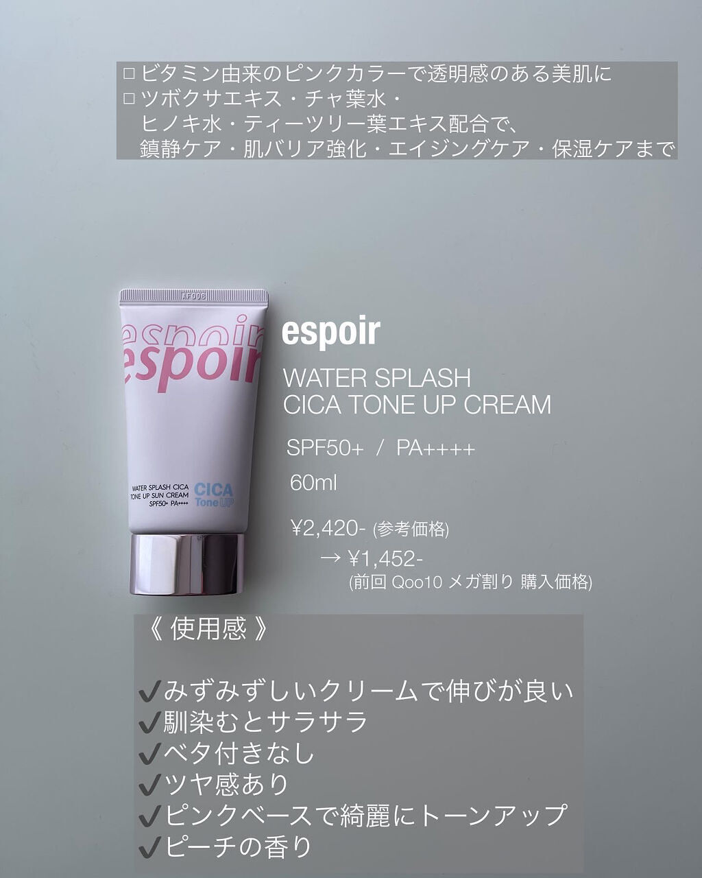 espoir ウォータースプラッシュ サンクリーム フレッシュ CICA | 2,530円〜 |