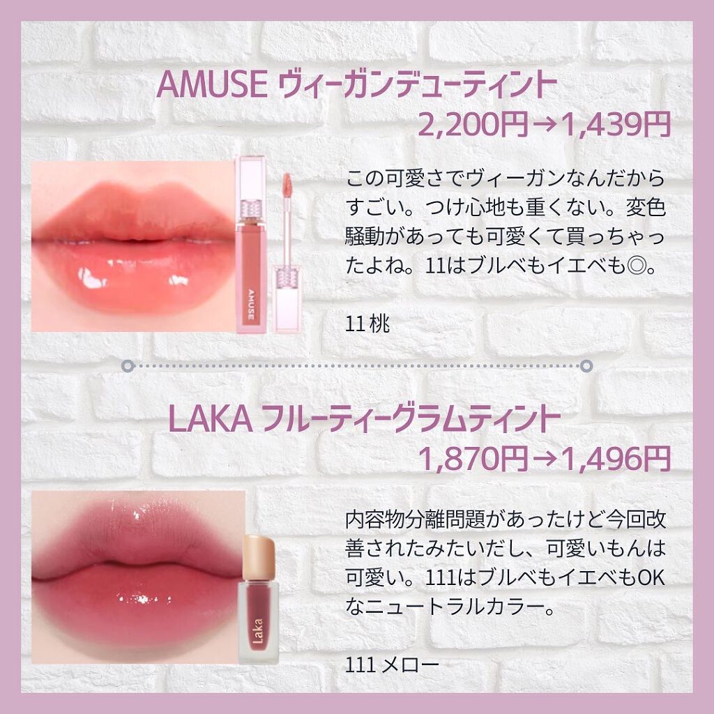 | 口紅・グロス・リップライナーランキング第80位 | 潤いが長続きします! 透け色ですが、重ねればパキッと仕上がるので調整しやすいティントだと思います!! | 詳細を見る |