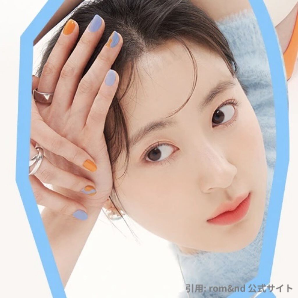 - 指先に玉石のような、ならかな光沢をとどめる。塗った瞬間から綺麗なツヤと光沢を維持し、重ねて塗っても透き通ったカラー感を鮮やかにとどめる、素早い乾燥力のナチュラルカラーネイル。「ロムアンド」の次世代型ネイルです。
