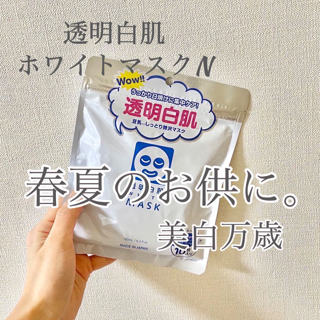 - <ホワイトマスクN> 水、グリセリン、BG、エタノール、ヒアルロン酸Na、加水分解コラーゲン、豆乳発酵液、クズ根エキス、クロレラエキス、アロエベラ葉エキス、ユキノシタエキス、ボタンエキス、ダイズ種子エキス、クエン酸、クエン酸Na、キサンタンガム、(スチレン/VP)コポリマー、ポリソルベート80、メチルパラベン、フェノキシエタノール