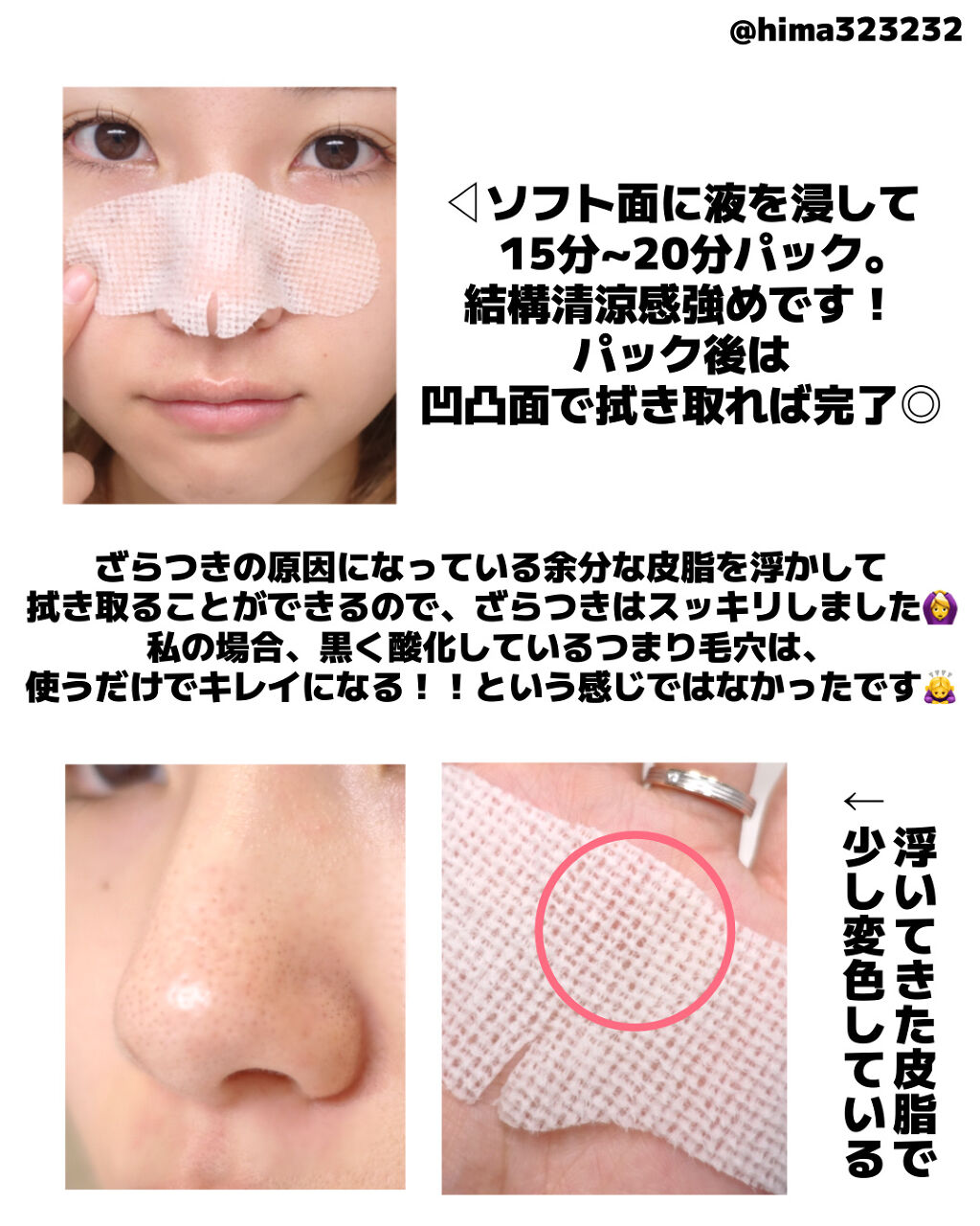 - 皮脂を無理矢理抜き取らず、やさしく溶かして低刺激ケア 黒ずんだ毛穴はもうさよなら! コットンパックで気軽に角質ケアのできるノーズピーリング。 コットンにしっかり含ませ、Tゾーンや皮脂の気になる部分に置き、15~20分程度コットンパック。 その後コットンをはがしたら、ぬるま湯でキレイに洗い流します。 自然由来エキス配合でケア後もしっとり。週に1回のスペシャルケアにおすすめです。