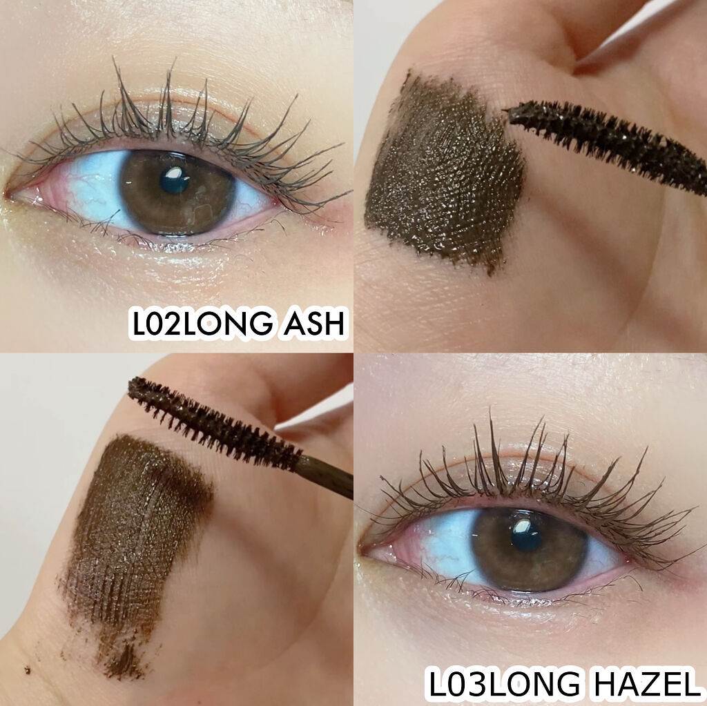 - ◆日本上陸前からすでに大人気 ロムアンドのマスカラがついに店舗販売スタート 1本1本のまつ毛をしっかりキャッチして 、 魅力的な目元を演出するムードマスカラ 。 セパレートされた綺麗な形と上向きカールを長時間キープします。 汗や皮脂に強く 、パンダ目を防ぐウォータープルーフタイプ 。 ◆おすすめポイント◆ ロングタイプは自まつ毛が 伸びたような自然で美しい仕上がりになります。 ボリュームタイプはブラックの1色展開で、まつ毛1本1本に存在感を出し、はっきりとした目元に仕上がります。 ・L01 LONG BLACK‥深みのあるブラックカラー ・L02 LONG ASH‥抜け感のあるアッシュブラウンカラー ・L03 LONG HAZEL‥初心者も使いやすいナチュラルブラウンカラー ・L04 LONG PLUM‥ほんのりとしたプラムブラウンカラー ・L05 LONG VINE‥ブドウのようなディープパープルカラー ・V01 VOLUME BLACK‥美しくボリューム感のあるまつ毛に仕上げるブラック
