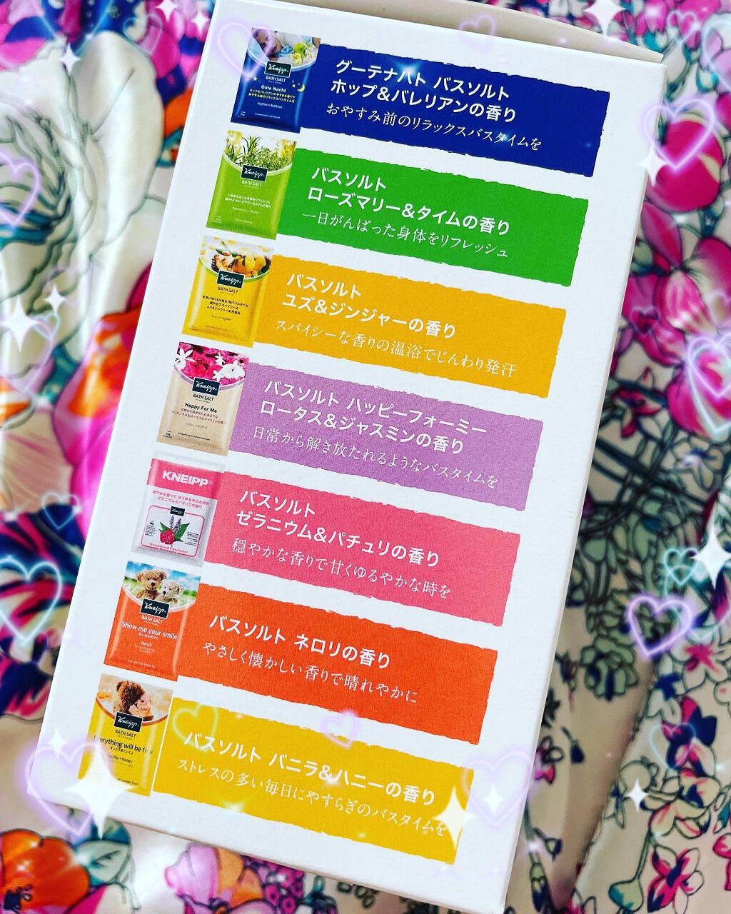 クナイプ グーテナハト バスソルト ホップ&バレリアンの香りから使ってみました💙 香りは外国の香り(?)がします😂 ※ハーブの香りです🌿 体がポカポカ温まりました✧︎*。一面が青色に染まってよりリラックスできました💙
