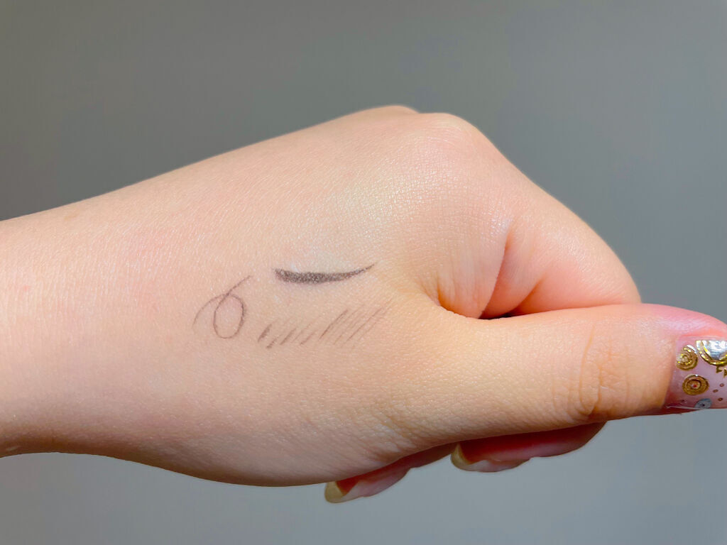 黒目くっきり 肌浮きせずに濃密発色 書きやすい極細筆 ブルーグレーらしいのですが透け感のある黒といいますかTheグレーではないので使いやすい👍 ヨレないしこすっても落ちないのにお湯オフ出来るのが嬉しいポイント🙌