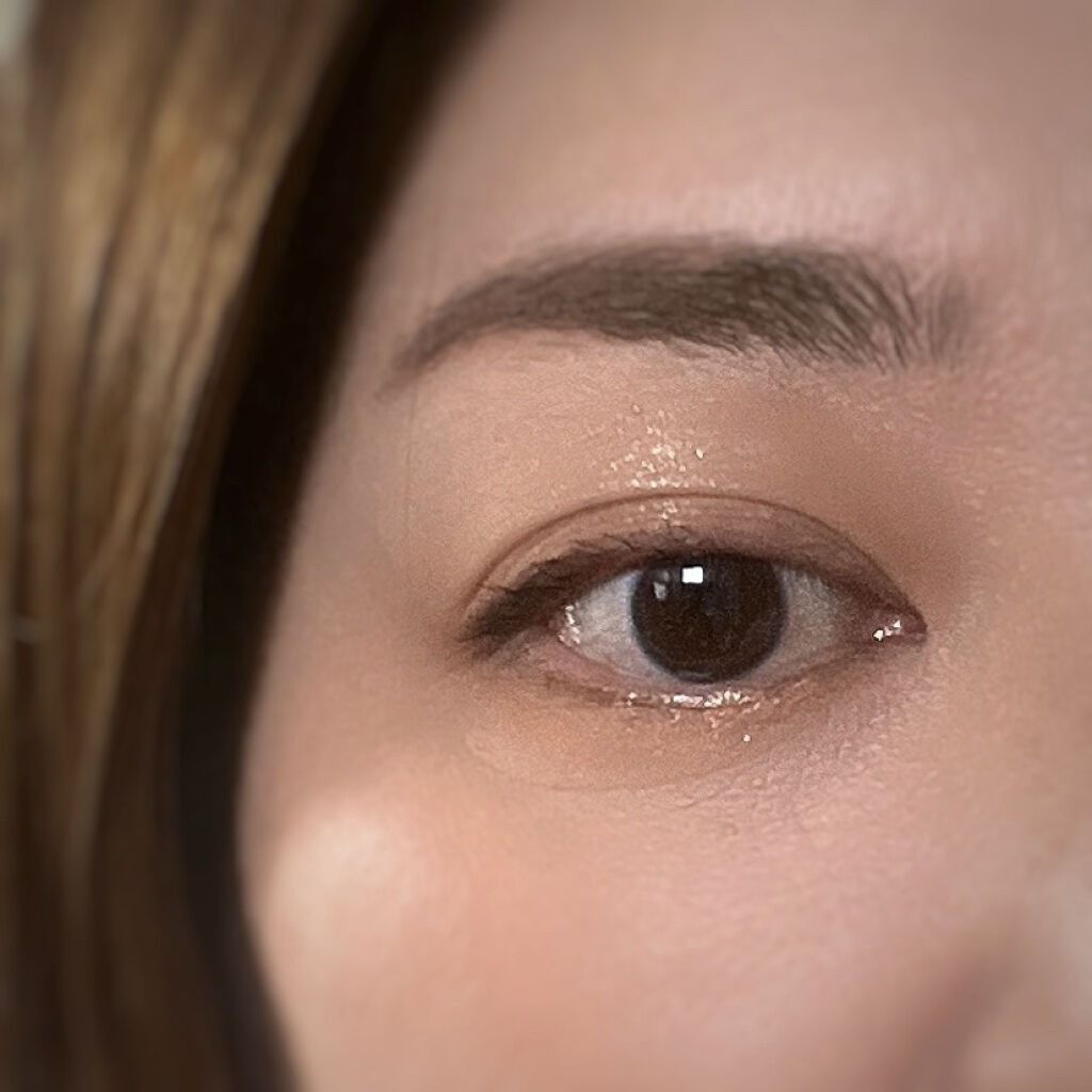 色合いは捨て色無しのベージュブラウン。粉質は思ったより発色してくれて◎ どのくらい色落ちするのかはまだ検証中。 左最上段のグリッター! こちらがすごい! 軽く指でまぶたに乗せようと思ったらごっそり取れてしまいました。そしてしっかり密着。 数回強めに擦ってやっと取れるレベル。 このグリッターだけでもお試しする価値あり✨ 使えるパレットです☺️