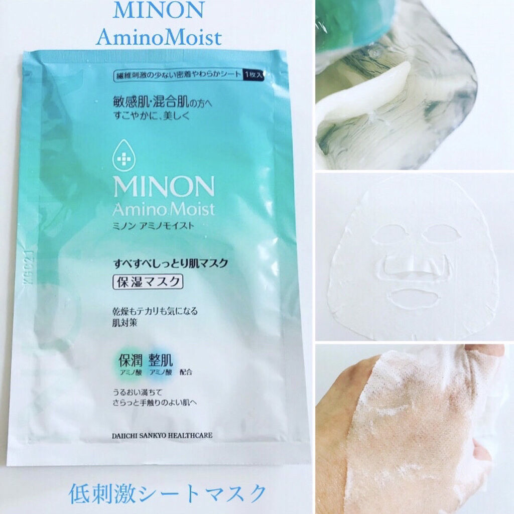 - <ミノン アミノモイスト すべすべしっとり肌マスク> 水、BG、グリセリン、ヒアルロン酸Na、フェノキシエタノール、トコフェロール、グリチルリチン酸2K、アスパラギン酸、アルギニン、グリシン、セリン、アラニン、プロリン、バリン、トレオニン、ヒスチジン、ソメイヨシノ葉エキス、プロパンジオール、DPG、水添レシチン、水酸化Na、ベタイン、PCA-Na、ポリクオタニウム-61、カプリル酸グリセリル、ペンテト酸5Na、1,2-ヘキサンジオール、アーチチョーク葉エキス、ロイシン、ポリメタクリル酸メチル、ラウリン酸ポリグリセリル-10、キウイエキス、(PCA/イソステアリン酸)PEG-40水添ヒマシ油、トリイソステアリン、アミノカプロン酸、エチルへキシルグリセリン、ラウロイルグルタミン酸ジ (フィトステリル/オクチルドデシル)、イソペンチ ルジオール、(アクリレーツ/ア クリル酸アルキル(C10-30))クロスポリマー