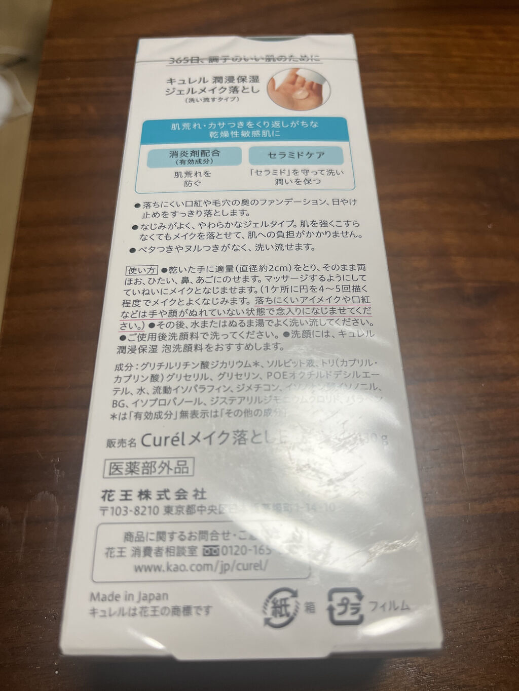 - 【敏感肌用】 ○肌の必須成分「セラミド」を守って洗い、肌荒れしにくい潤い肌に保ちます。 ○落ちにくい口紅や毛穴に詰まったファンデーションをすっきりと落とします。 ○なじみがよく、やわらかなジェルタイプ。肌を強くこすらなくてもメイクを落とせて、肌への負担が少ない使い心地です。 ○ベタつきやヌルつきがなく、洗い流せます。 ○消炎剤(有効成分)配合。肌荒れを防ぎます。(医薬部外品) 商品に関するお問い合わせ 受付時間9:00~17:00(土曜・日曜・祝日除く) *製品の誤飲・誤食など緊急の場合は、受付時間外でもお電話ください キュレル:0120-165-698