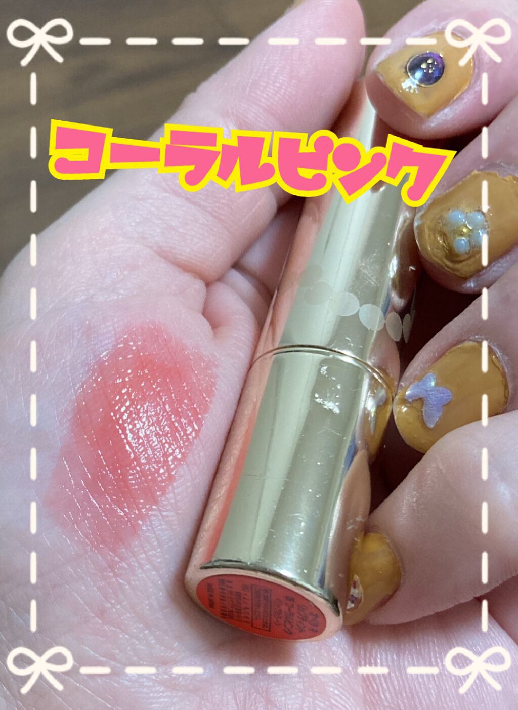 多幸感あふれるクリアなコーラル🩷 特に時間が経つと蛍光感がでてきちゃう。 THEピンクのリップを求めている人にピッタリ! ティッシュオフしても若干色は残ってる! おすすめの塗り方は、いつもよりも少し濃いめに塗ってから、ティッシュオフ!