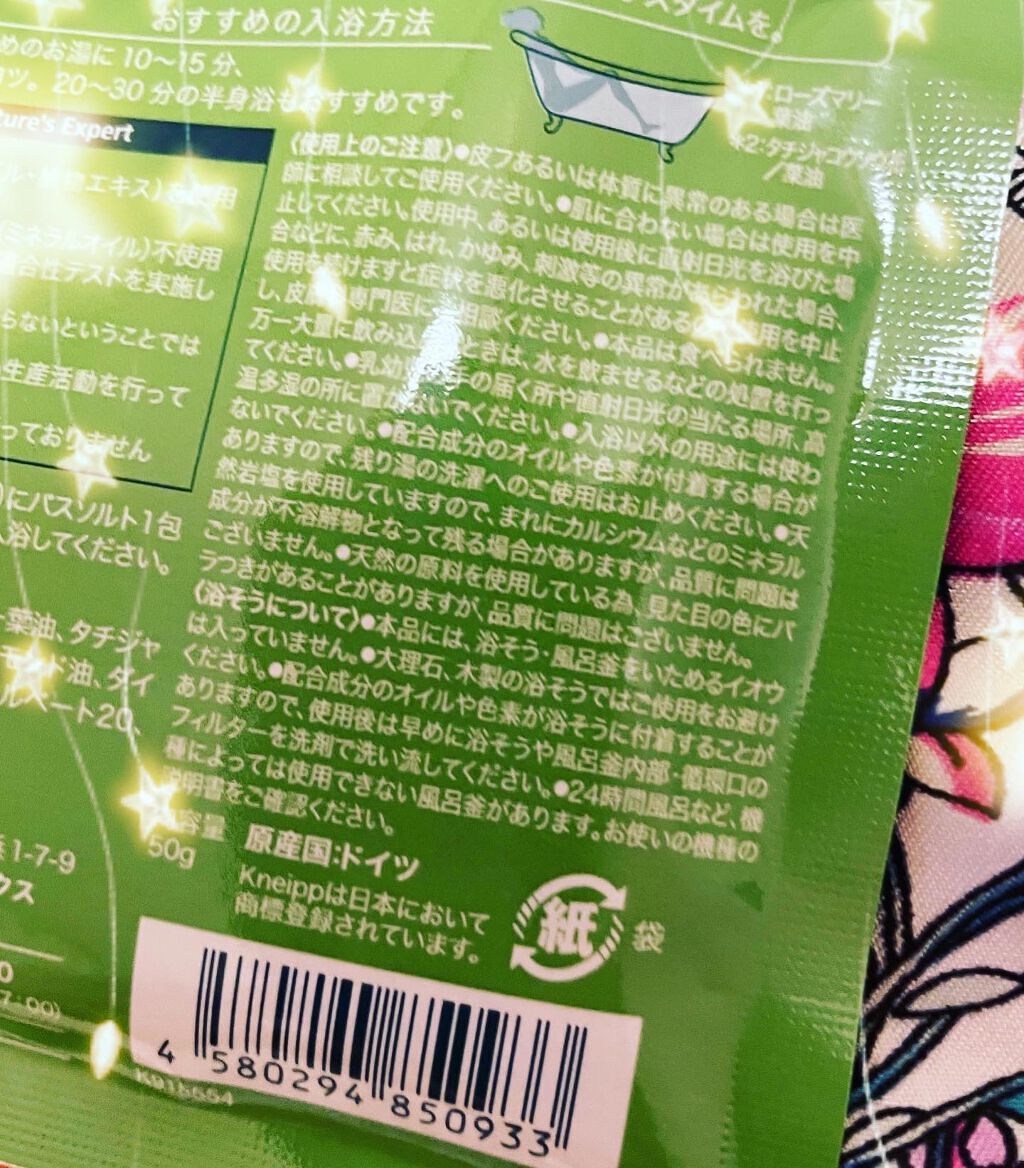 クナイプバスソルトローズマリー&タイムの香り 50g大好きなクナイプのバスソルト薄いグリーンのお湯の色と、ハーブのような清々しい香りでリラックスできます。天然岩塩と植物オイル配合で体の芯から温まるし、気持ちが穏やかになりました。#バスソルト#...