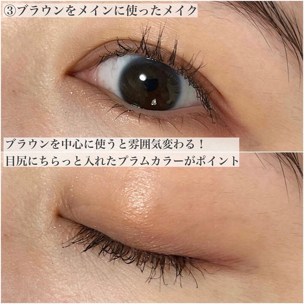 実物見ないで買ったんだけど、手元に届いて見た瞬間「あ、こりゃベスコスだわ」と思った!笑 色も可愛いんだけど、質感が絶妙…! 左上の変光ピンクのツヤ、右上のサラサラ細かい繊細ラメを始め、ツヤとマットがバランスよく入ってて最高💓 写真のメイクは右下のマットブラウンを控えめに他の4色メインで仕上げました! 透明感ある仕上がりで素敵🥺 マットブラウンをしっかり入れれば濃いめにも仕上げられると思う!また色々メイクパターン研究します〜🧐 迷ってる方はぜひ実物を見てみると良いかも!実物を見たらお迎えせずにはいられないハズ💓笑