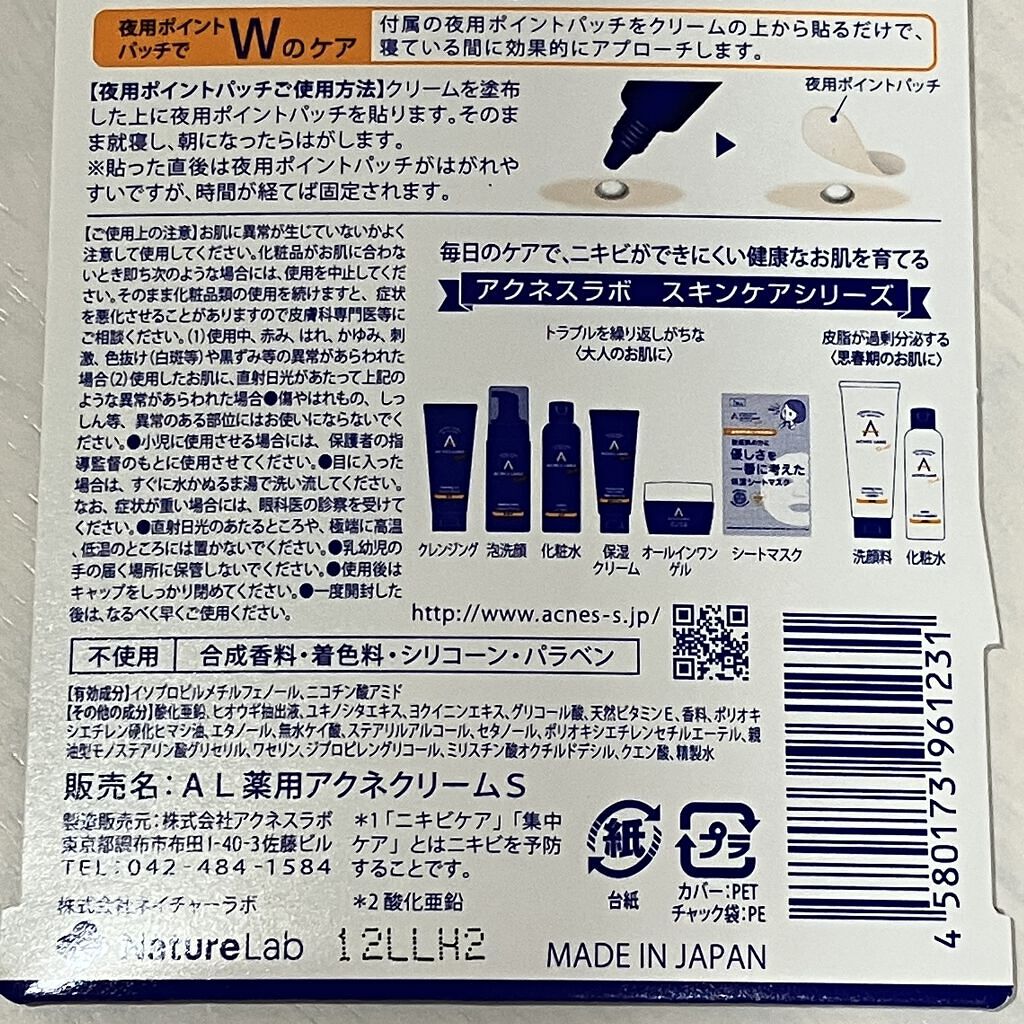 商品詳細情報アクネスラボ 薬用ニキビケア スポッツクリーム