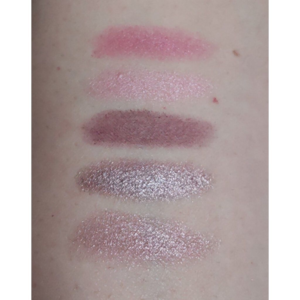 これねー、ラメがキラキラ✨で めちゃめちゃ可愛いの💕🐻🎀 それぞれのキラキラが ほんとにときめくー✨! 下品なギラギラではないので 使いやすいラメだよ♥️✨🐰 粒子が細かく粉飛びしないので、 しっとりした質感のアイシャドウです💗