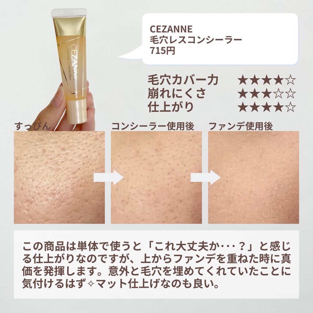 セザンヌ隠れ人気アイテム…✨クリアタイプの「毛穴レスコンシーラー」をご存じですか?💞頬や鼻など毛穴の凹凸が気になる部分に塗るだけで、瞬時にフラットなさらさら肌にし、凹凸をなめらかにカバーしてくれるコンシーラーです🤎画像をスワイプしてPOINT...