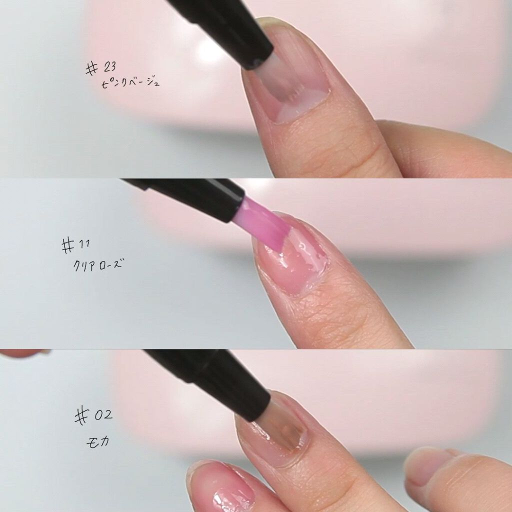 - 「ベース」「カラー」「トップ」の3つの役割を1本で果たす、便利なオールインワンジェル。ペンのような感覚で持つことができ自爪も塗りやすく、収納もコンパクト。リムーバー無しで剥がしてオフできるからその日だけネイルにもぴったりです。さらに特有の嫌なニオイがほとんどなく、パラベンやタルクなども処方されていません。誰でもネイルを楽しめます。