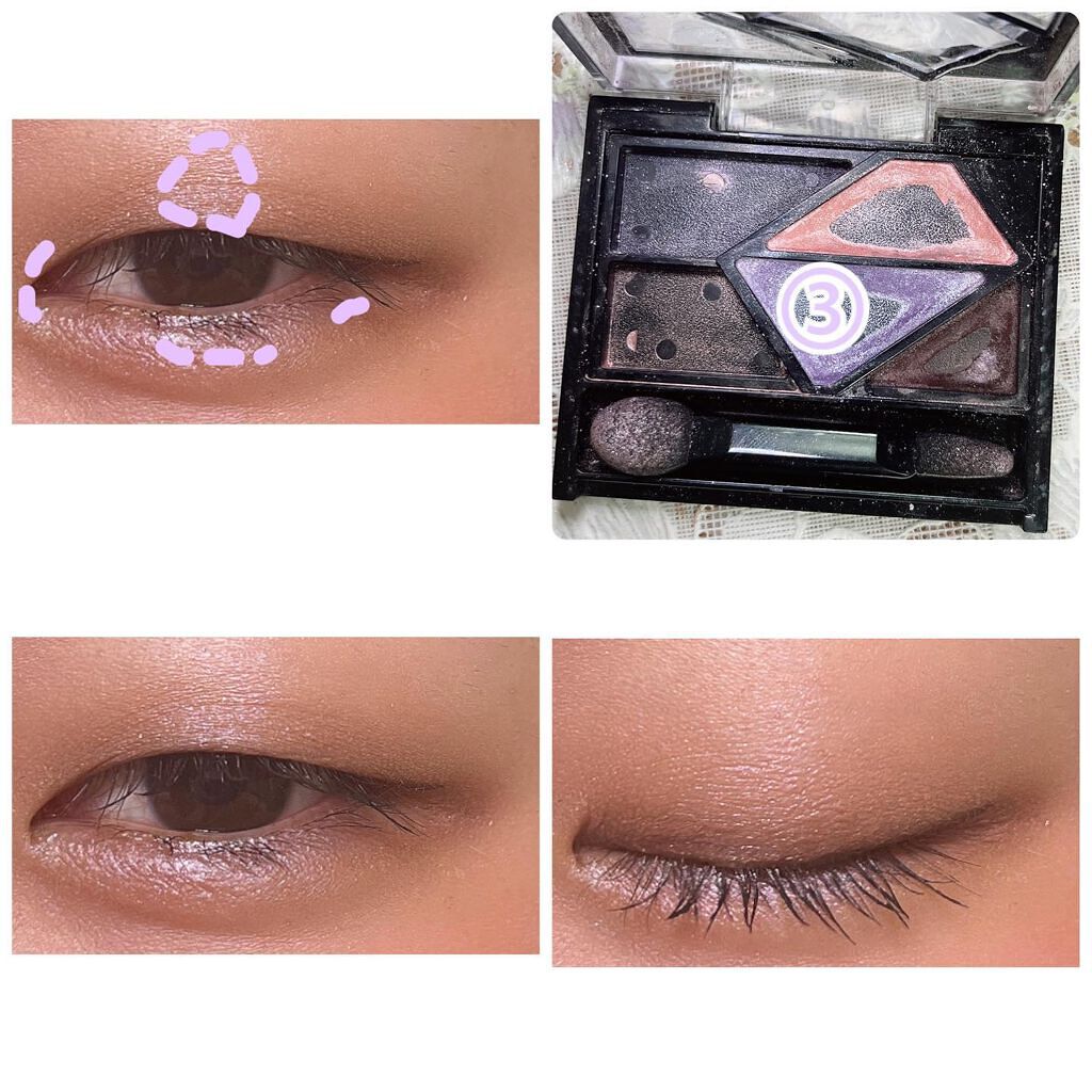 ラメをメインにしたくてあえて目尻にだけパープル💜 ポイントで使うとケバくならないし程よく透明感が出るからおすすめ◎ ③のラメがさらさらなのにラメ飛びしなくて抜群に使いやすい◎ マスカラはバーガンディ👀 ラインはブラウンでナチュラルに仕込んでみた! チークもパープルにしたけどほんのり薄くのせる程度! 底見え拡大してきた!!嬉しい😆 リップはフィグフィグ💋