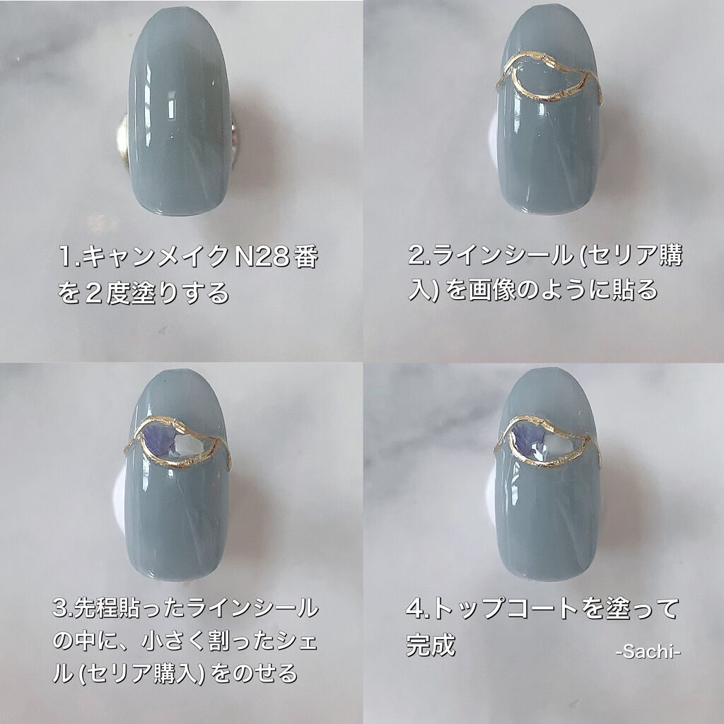 ワンカラーでも指ごとに色を変えるだけでオシャレに見えます💕 画像のようにゴールドラインとストーンを少し足すだけで華やかさがアップ🥰 何度かご紹介したことのあるスポンジで作るグラデーションです✨ スポンジを使うことで境目が綺麗に馴染んでくれます💕 アルミホイルの上でブラウンとトップコートを1:1くらいで混ぜたものを、トップコートのハケに取って3箇所に塗るだけ👌 事前に混ぜたものを塗ることで、爪の上でぼかすより簡単に出来ます💕 ベースカラーが乾く前に点置きしてぼかすことで綺麗にぼかせます✨ スピードが大事なので、使うポリッシュのキャップは全て開けておきましょう😊 天然石のラインはガタガタの方がより天然石っぽく見えるので、ラインを描くのが苦手な方でも大丈夫🙆♀️ 難しそうに見えて、やってみると意外と簡単に出来ます♡