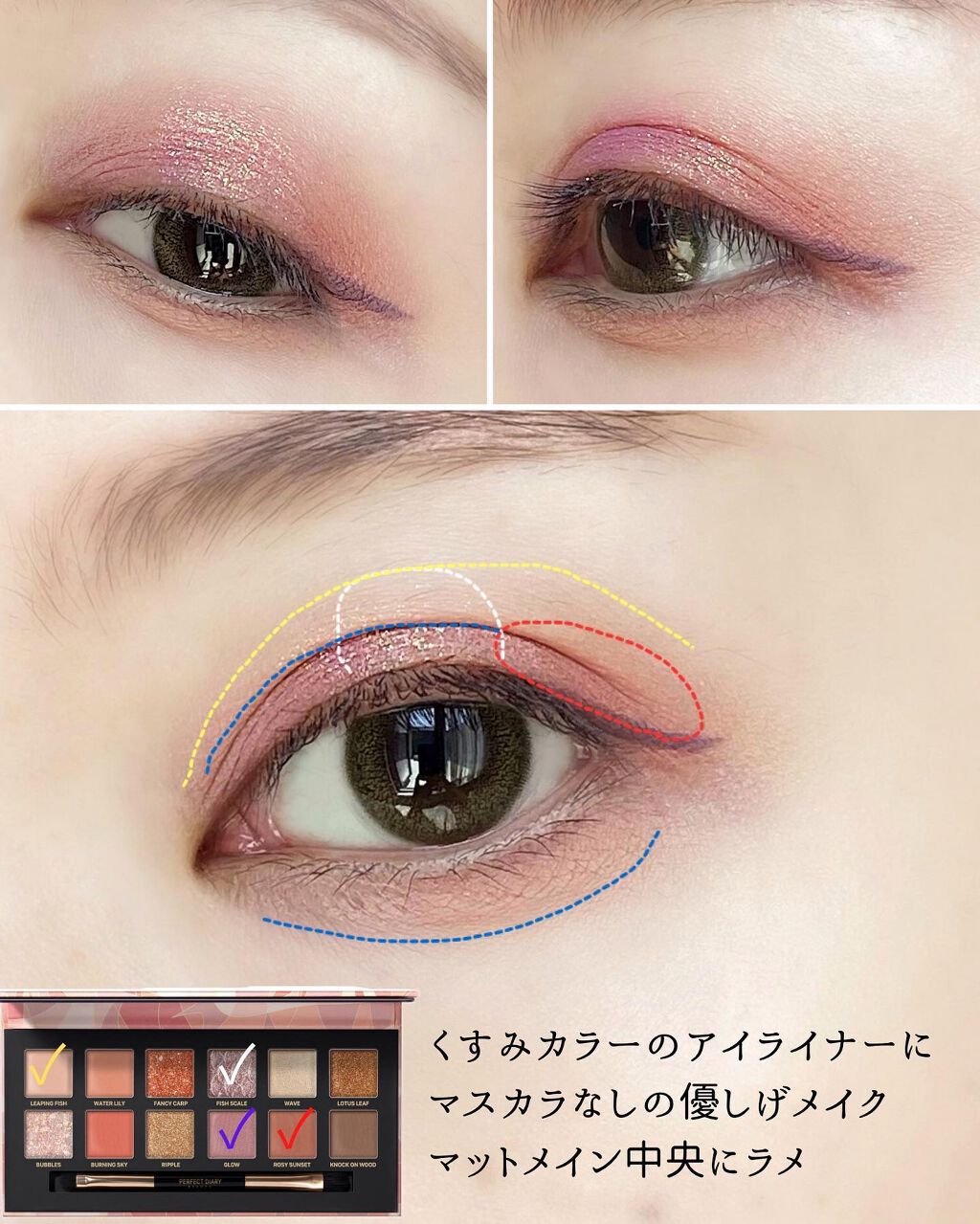 ナチュラルなのに盛れる 色素薄いメイク ♡パーフェクトダイアリー 動物アイシャドウパレット 鯉 ♡D-UP エアクリームペンシル ソイラテブラウン ♡ファシオ パーマネントカール マスカラ ハイブリッド 102切なる願い ♡オロラ ディアサムアッシュグレー