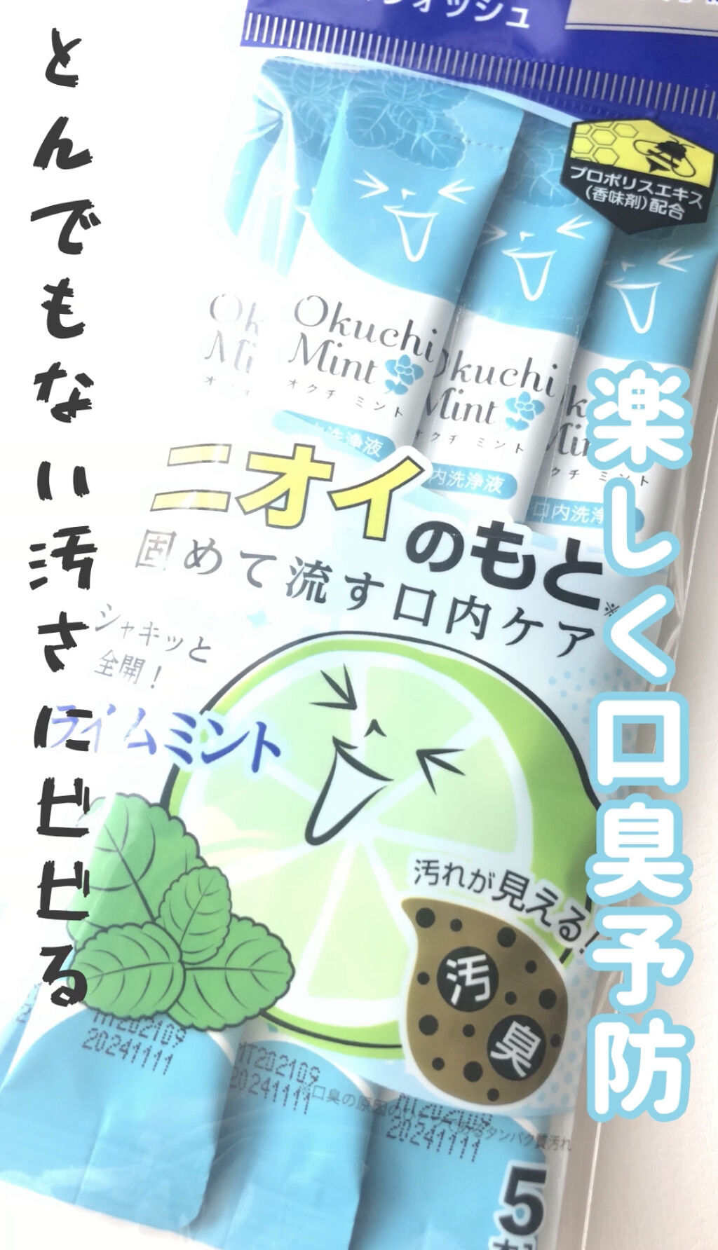 - ●ライムの酸味と爽快ミントですっきり●口をゆすいだ後に自分の口の中の汚れが見えて驚き●20秒ゆすいで速攻リフレッシュ●携帯に便利なスティックタイプ