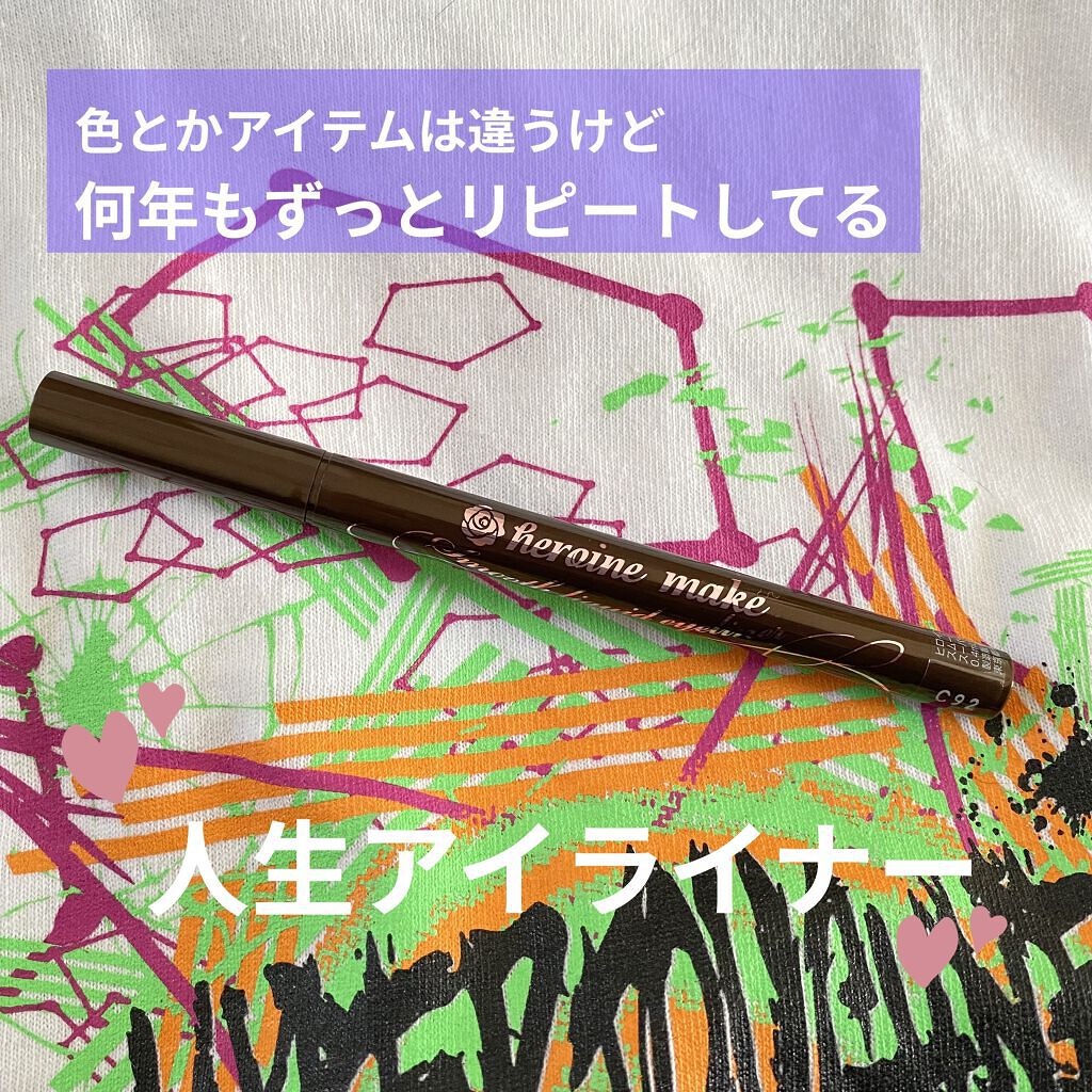 ヒロインメイクスムースリキッドアイライナースーパーキープ02ビターブラウン耐久性の高い処方でウォータープルーフで涙・汗・皮脂に強く美しいラインを長時間キープお湯オフというから買ってみたぁ細筆で描きやすい抜け感があるのでブラウン系、好きまぁまぁ...