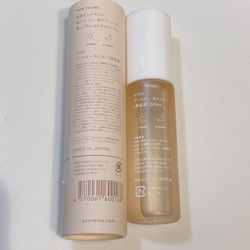- KINS BOOSTERは、成分・使用方法共に肌の菌を育てることに特化した、スキンケアの新提案 「菌に直接アプローチできるブースター」。KINS ESSENCEの主成分でもあり、400種類以上もの栄養素を含み善玉菌のエサとなる乳酸菌生産物質とコメヌカエキス、コメ発酵液の3種類の発酵成分を組み合わせています。 洗顔後、スキンケアの最初に使っていただくことで、皮膚常在菌のはたらきを妨げることなく、肌をみずみずしく潤します。