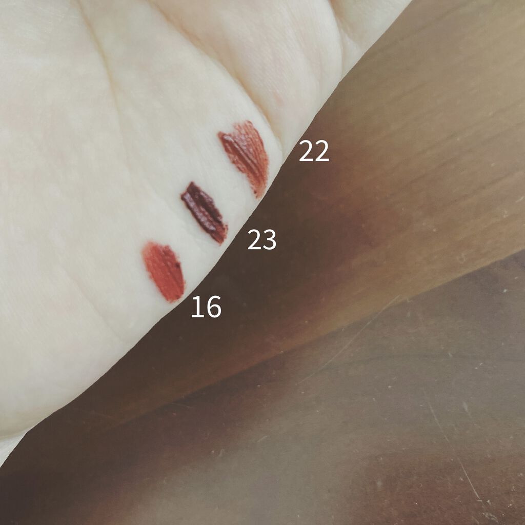 #推しマットアイテムこんにちは焼きタラコです〜推しマット!ということで紹介していきます!それでは!🥑rom&ndゼロベルベットティント16,22,2316,ガッツリ塗ると少し浮いた…ので、ぽんぽん塗りがおすすめ!青みが強すぎないので上手く使え...