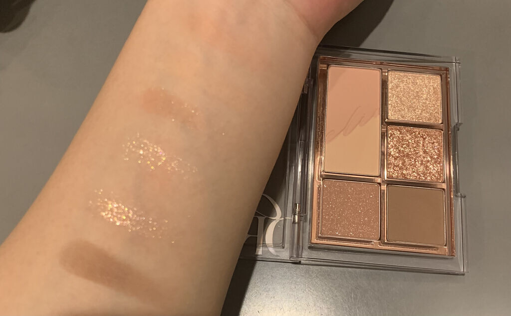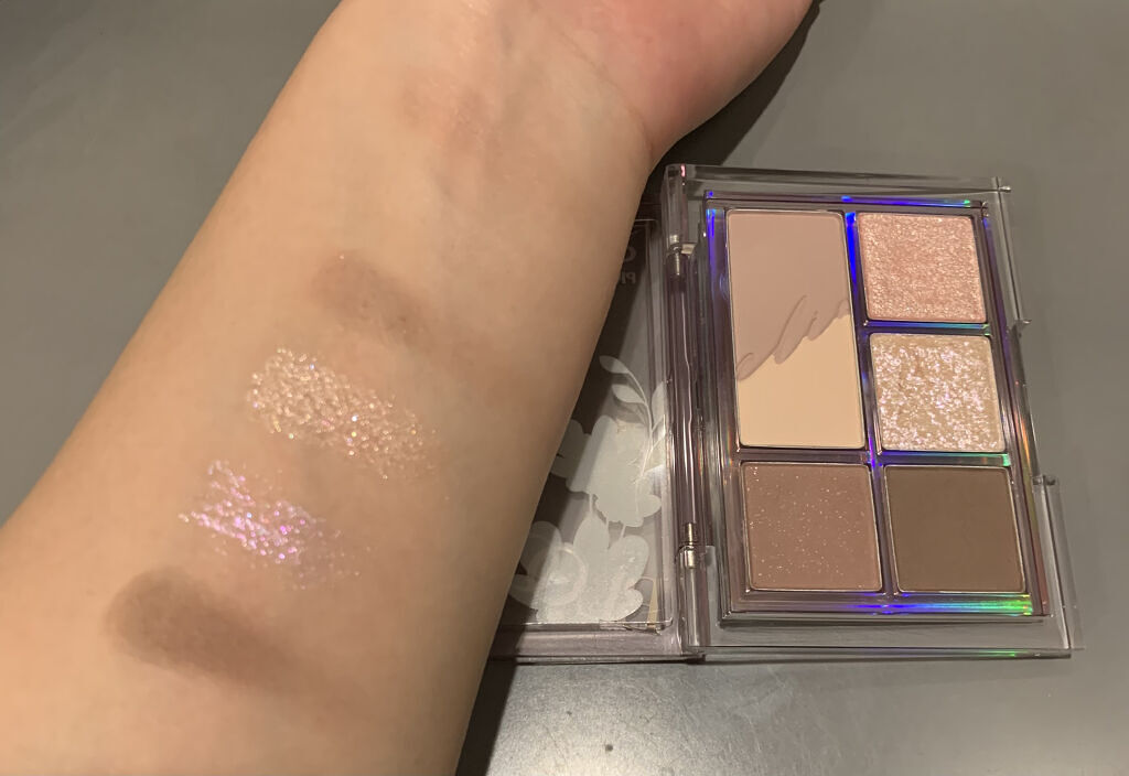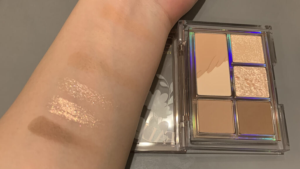 - 同系色陰影カラーと上品でクリアなグリッターの組み合わせの必要なカラーだけ詰め込んだミニアイパレット!
