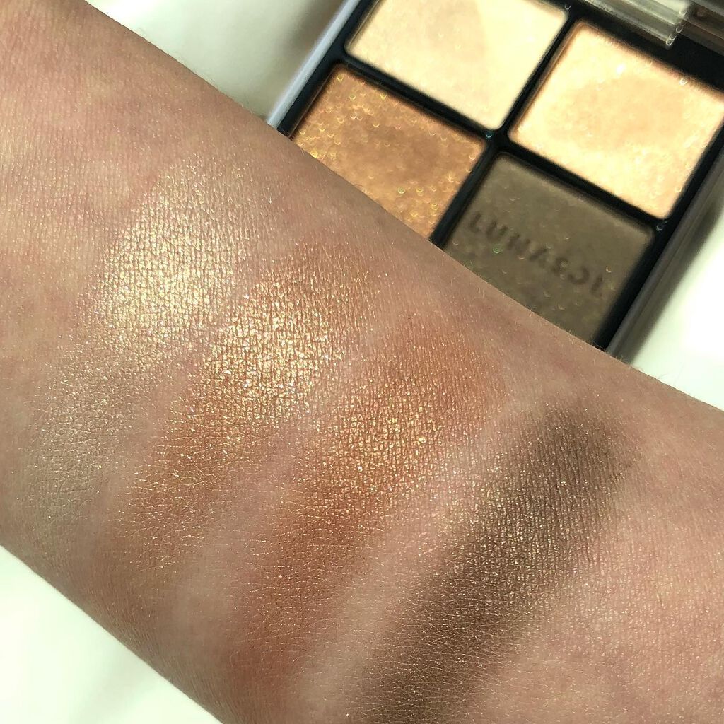 どのパレットも左上が繊細なラメでそれ以外の3色はマットです✲ マットが好きな方はマットのみを使ったりわたしのようにラメ好きな方はラメ足ししたりお出かけメイクでもオフィスメイクでも使えちゃうね😊🎵 粉質の良さはいつものシルキースフレアイズと同様、良きでした😘