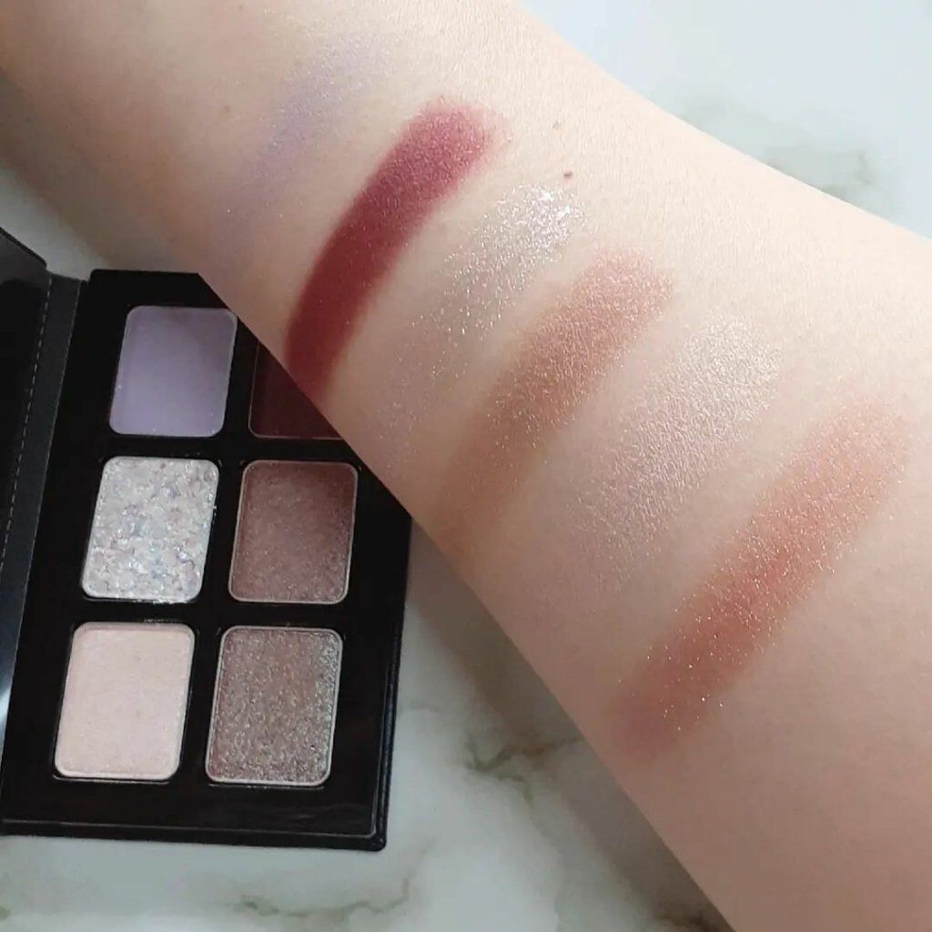 全色にパールとラメがふんだんに入っていて控えめな発色、上品な煌めきが美しい😍❤ 肌馴染みが良く、グラデーションも作りやすいので、どんなに重ね付けしても失敗しない❗ 柔らかめな粉質はしっとりとして密着度が高く、粉飛びもラメ飛びもしません‼ 上品なツヤと輝きは流石👏👏👏❤