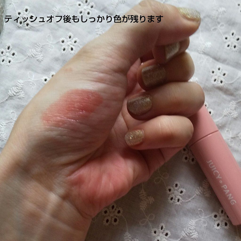 ラメがめちゃくちゃ可愛いA’pieuのジューシーパン スパークリングティント。BE01のときめくイチジクはベースがベージュ系のナチュラルカラーでゴールドやホワイト系のラメが入っています! 普段から濃いめのリップが好きな方は物足りないと感じると思うので、こちらを全体的に塗った上に内側に濃いめのリップ塗ってもとても可愛く仕上がります🫶🏻 ティント効果もあって、ティッシュオフするとツヤ感は失われるものの色とラメはしっかり残ります!