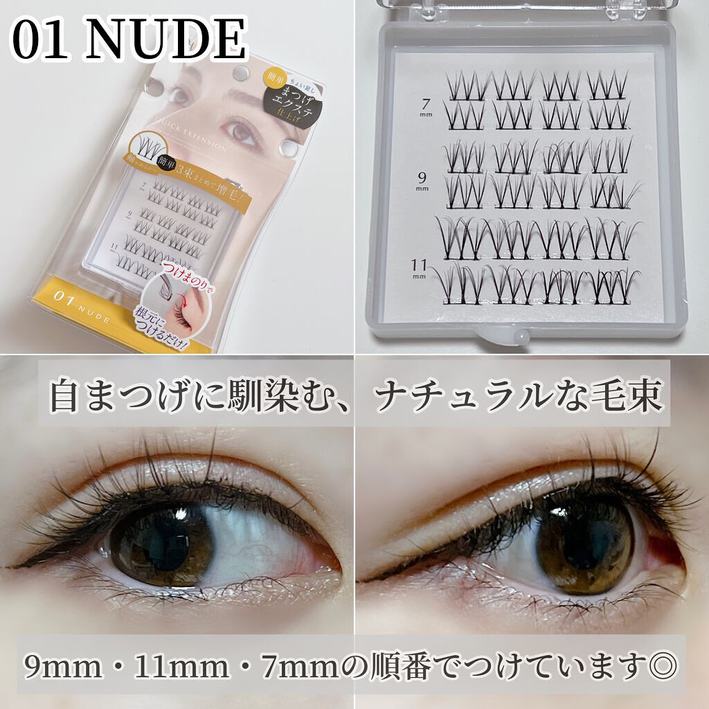 - 全6種 つけまのりで簡単に“ちょい足し”できる、自分で出来るまつげエクステ。なりたいイメージに合わせて目元の印象をコントロールできます。01,02(3束タイプ):毛束の間隔をあえて広めにデザインして、抜け感のある目元に。3束をまとめて装着するのであっという間にまつげエクステ仕上がりが叶います。03~06(1束タイプ):まつげの下から1束ずつ装着するから、自まつげと馴染んで自然な仕上がりに。クッキリ盛れる束感まつげや、ふわっと軽い立体まつげも簡単&キレイに仕上がります。