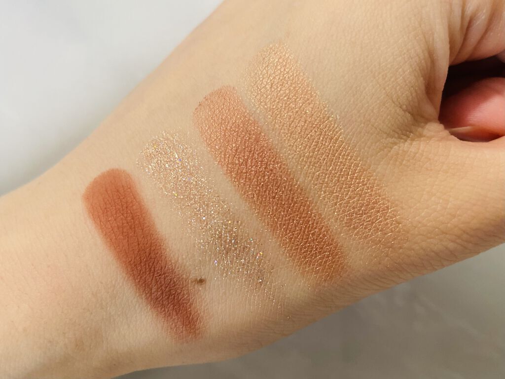 - 立体感ある目元に 質感MIXアイシャドウパレット グリッター、シアー、マット。異なる質感を組み合わせれば、簡単に立体感のある目元が完成♡ 発色バツグン しっとりなオイルリッチ処方 美容液成分6種類※1配合で目元ケア ※1 アルガニアスピノサ核油、セラミドNP、加水分解コラーゲン、ホホバ種子油、ヒアルロン酸Na、ザクロ果実エキス