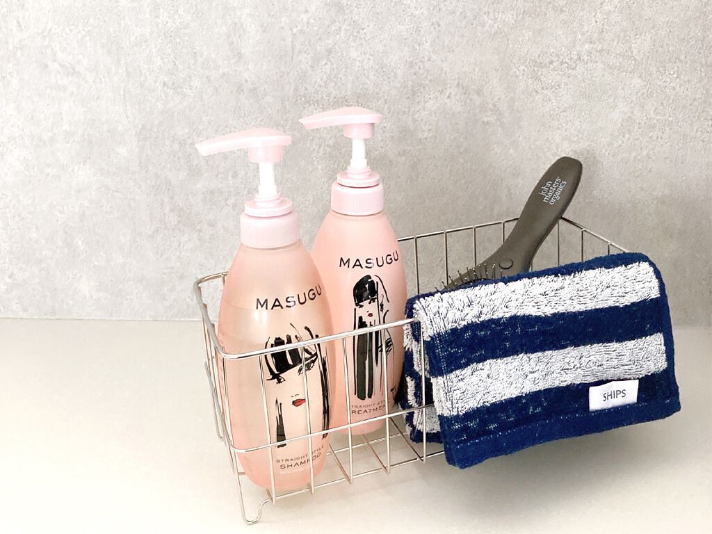 MASUGU様のくせ毛やうねり髪に悩んでいる人に向けたシャンプー、トリートメント、ヘアマスク、ヘアオイル使用してみました😊香りが甘め✨泡立ちも良く乾かした後もくせ毛なのですがまとまりが良かったです✨ヘアオイルは重めのテクスチャー。ヘアセットで...