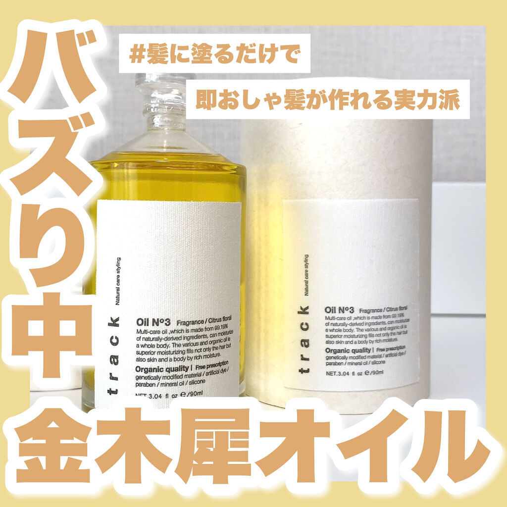 - ■track oil No1(天然由来成分100%)フレッシュシトラスの香り 優しいツヤとうるおいで上品な素髪感を ■track oil No2(天然由来成分99.2%)シトラスハーブの香り 凛としたツヤとみずみずしさで端正な印象を ■track oil No3(天然由来成分99.19%)シトラスフローラルの香り 息づくツヤと深いうるおいでまとまりある表情を