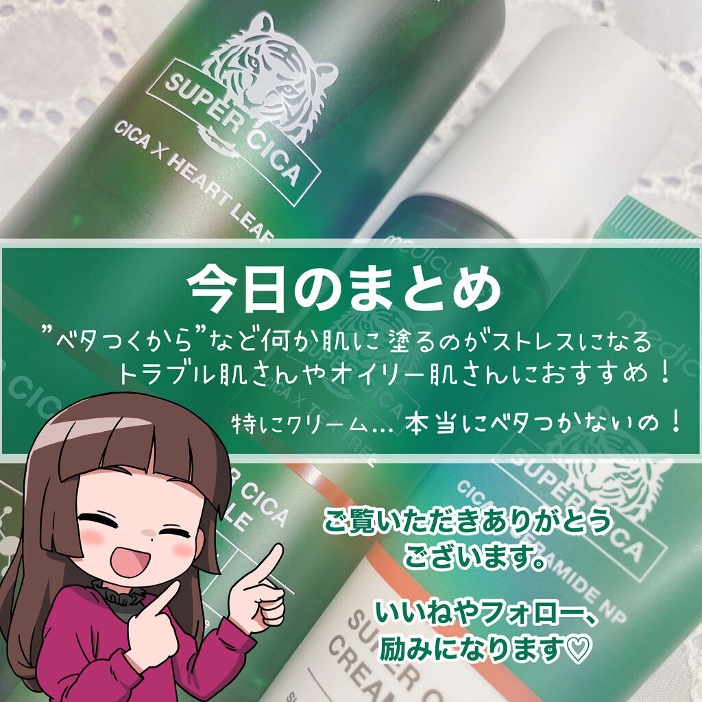 とろみのあるジェル状テクスチャー。ベタつきが少なくさっぱりとした使用感です。 敏感なニキビ肌さん、夏のダメージ肌をケアしたい方におすすめだよ♡ 乾燥によるキメの乱れにアプローチする超強カスーパーシカ 30,000ppm配合