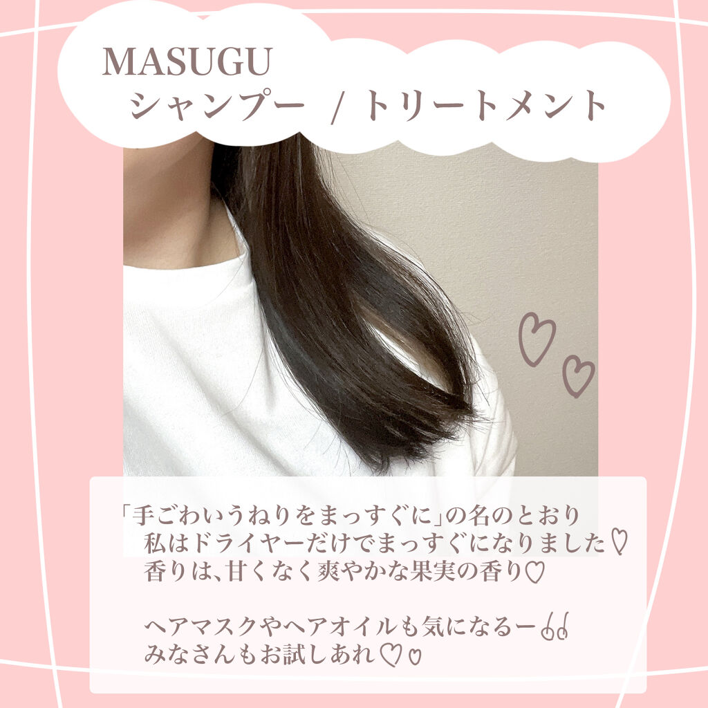 - 「MASUGU」は、うねり髪に悩んでいる女性へ向けて「まっすぐ髪」を追求し、開発されたヘアケアブランド。 うねりの原因が髪内部の水分量の偏りにあることに着目。植物由来のうねり補整オイル*¹を配合した独自処方が、髪内部のうるおいを保ちながら外側をコートし、髪の外側と内側の水分の行き来をコントロールすることで、使うたびうねりのないまっすぐな髪へと導きます。 シャンプー、トリートメント、ヘアマスク、ヘアオイルの4種のヘアケアを展開します。 2021年3月15日 バラエティストア一部店舗先行販売 2021年4月 5日 一部ドラッグストア販売 *1 γ-ドコサラクトン(毛髪補修成分)