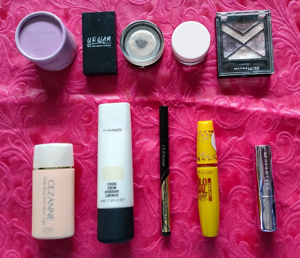 アイシャドウパレットは、URGLAM UR GLAMBLOOMING EYE COLOR PALETTE 02を、使用しました。 マスカラは、MAYBELLINE NEW YORK コロッサルボリュームエクスプレスを、まつ毛全体にまんべんなく塗ります。 リップは、wet 'n' wild MegaLast Lip Colorを、唇全体にまんべんなく塗ります。