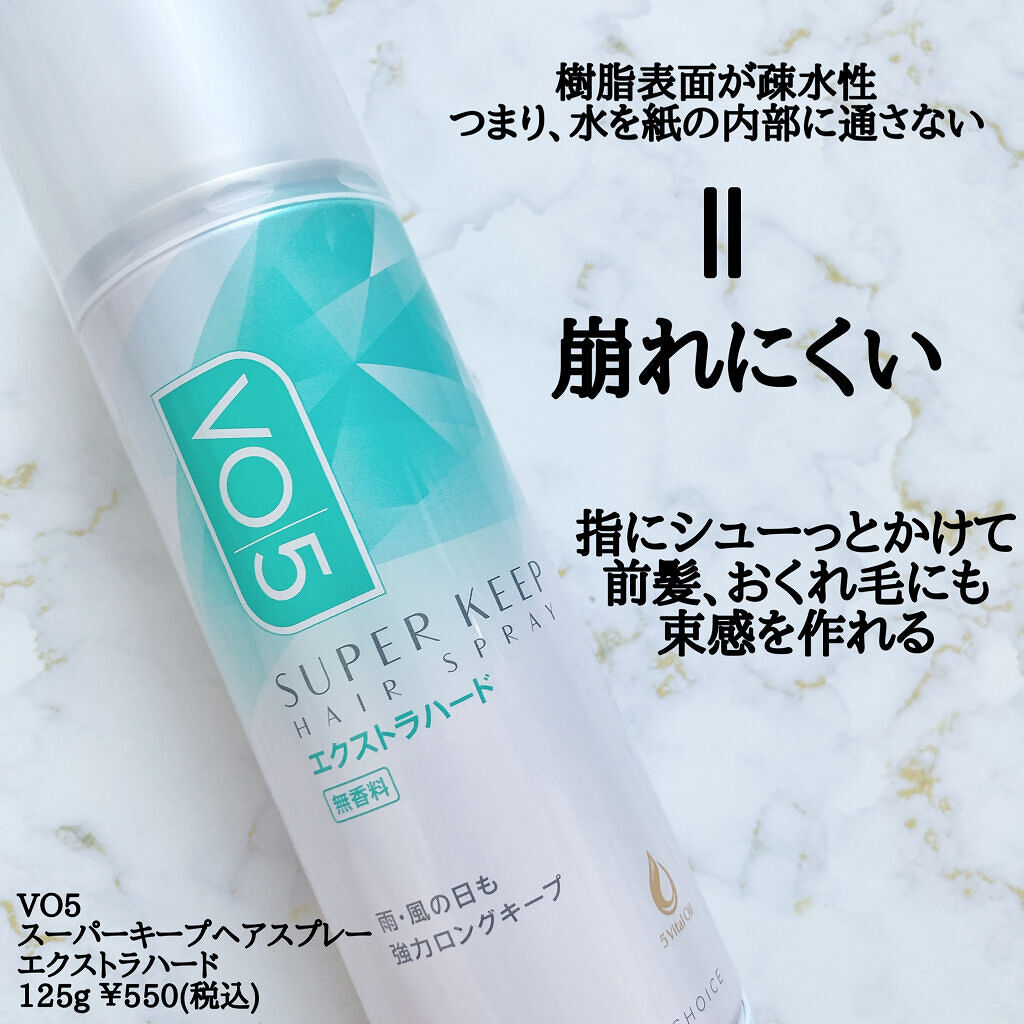 VO5 スーパーキープヘアスプレイ<エクストラハード> 無香料 | 308円(編集部調べ) |