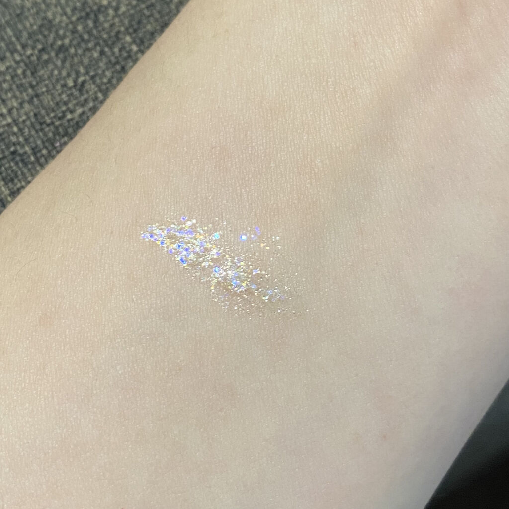 - 大粒すぎないから使いやすい! 高輝度ラメたっぷりのカラフルグリッター ラメの粒子サイズを大きくしすぎないことで、 悪目立ちしない絶妙な輝きに仕上げました。 ベース液にパールを多めに配合しているため、 サラッと控えめに塗ってもしっかり輝きます! やわらかく使い勝手の良い極細筆で、狙ったところにラメをオン! ☆使い方☆ 下まつげのキワに沿って 本品で細くアイラインを引くと、 オーロラに輝く印象的な目元の完成!