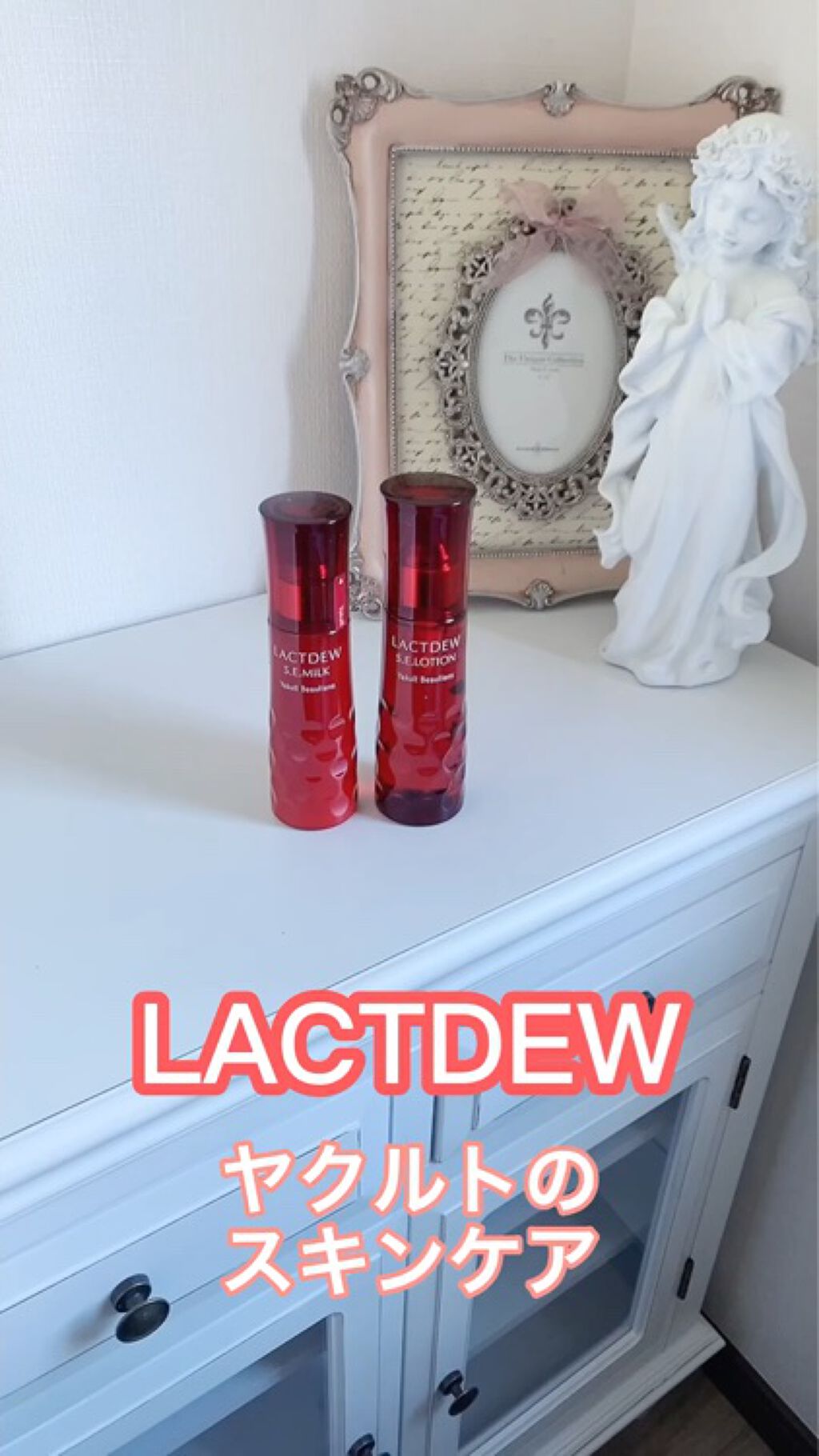 華やかな赤いボトルが素敵。 光に当たるとキラキラしてすごく綺麗なんです✨ こちらはあのヤクルトがつくった化粧水。乳酸菌がつくりだすうるおい成分に、お肌を守る働きがあるんだそう! なじませるとしっとりもっちりするような感触。 ベタつきがほぼ残らないところも◎