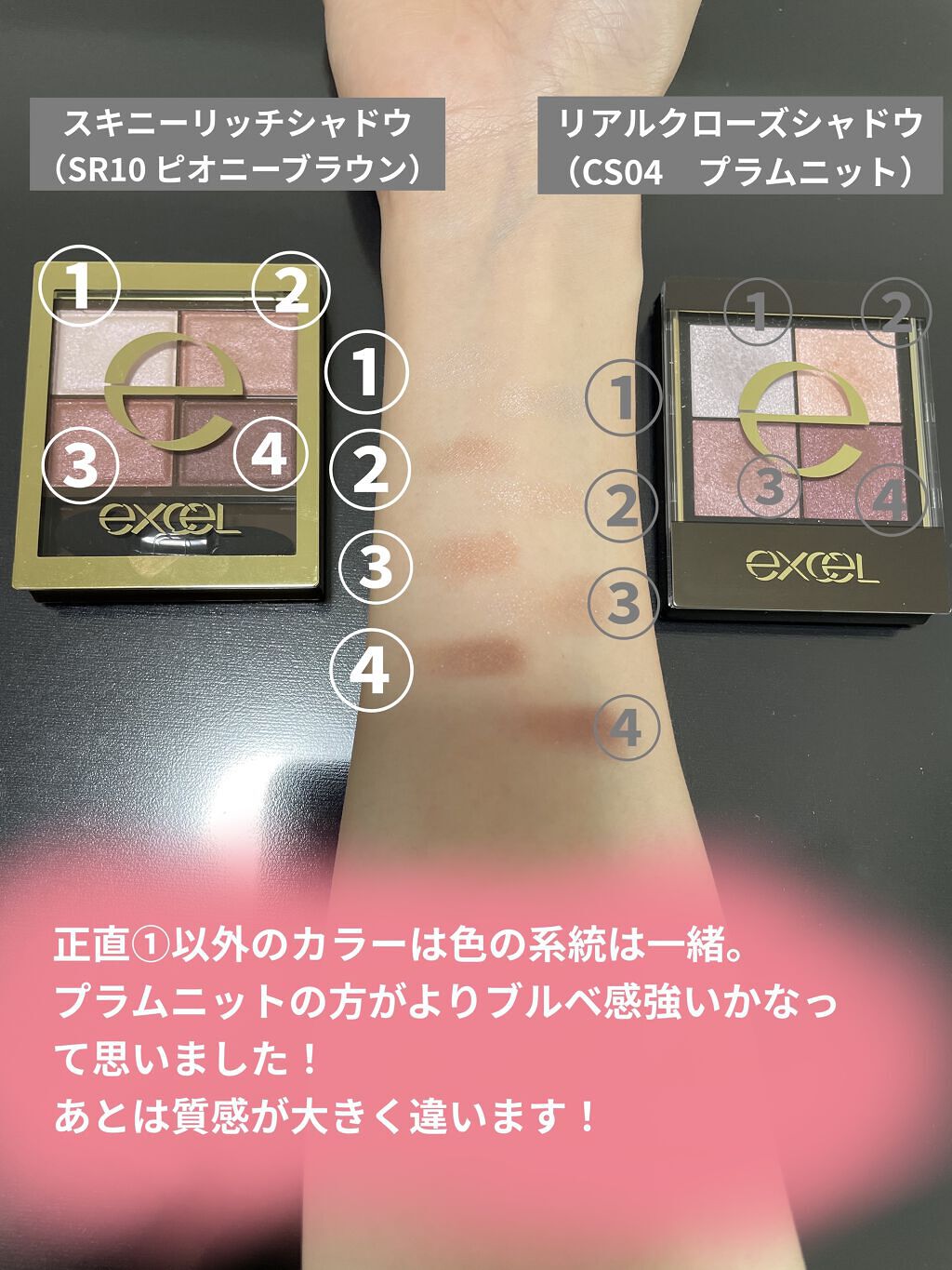 新卒1年目の毎日メイクの相棒!商品情報excelスキニーリッチシャドウSR10ピオニーブラウン価格:1,650円発色 ★★★★☆パール ★★★★☆色もち ★★★☆☆ブラウン〜ベージュの色だけで作った目元に溶け込む極上グラデアイシャドウ順番に...