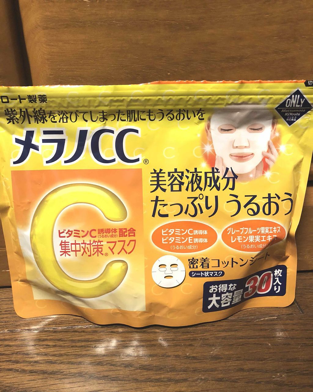 - 紫外線を浴びてしまった肌にもうるおいを。 美容液成分たっぷりうるおう、お得な大容量 「メラノCC 集中対策マスクMK」は、うるおい成分「ビタミンC誘導体(うるおい成分)」「ビタミンE誘導体(うるおい成分)」を配合したフェイスマスクです。 天然コットンシートを採用。 毎日のケアに使いやすい大容量30枚入り。 化粧水などで肌を整えた後にお使いください。美容液・乳液・クリーム等は、マスク使用後にお使いいただけます。 ロート製薬とマツモトキヨシホールディングスとの共同企画