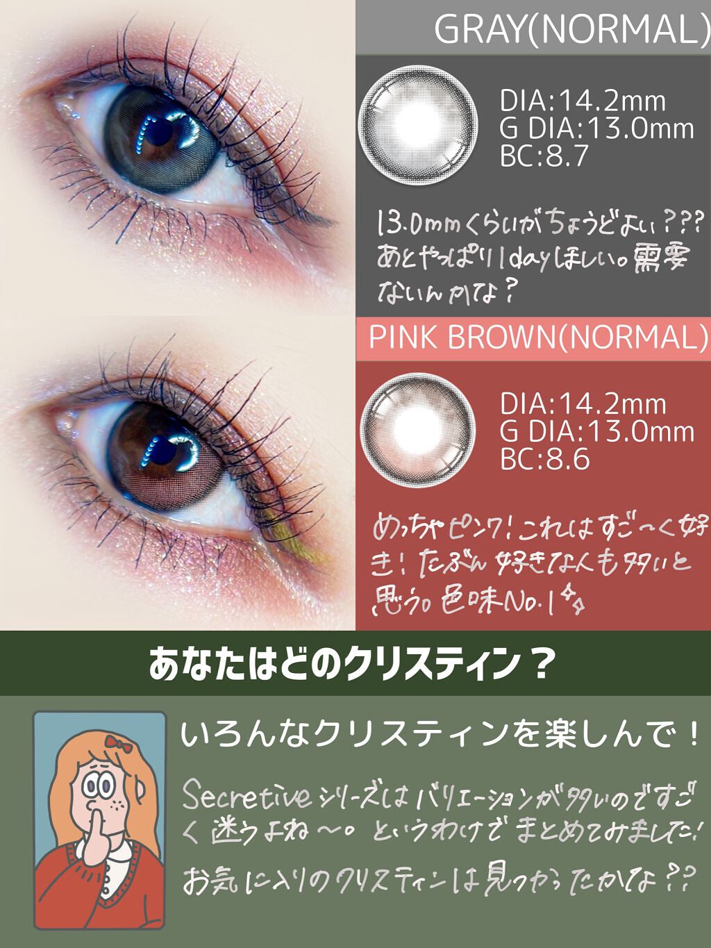 【韓国カラコン】🤫secretivekristinまとめ✍️(ハパクリスティン)ハパクリスティンのなかでも大人気シリーズsecretivekristinをまとめました!いろんな種類があるのでどれがどれ?となってる人向けです◎お気に入りのkri...