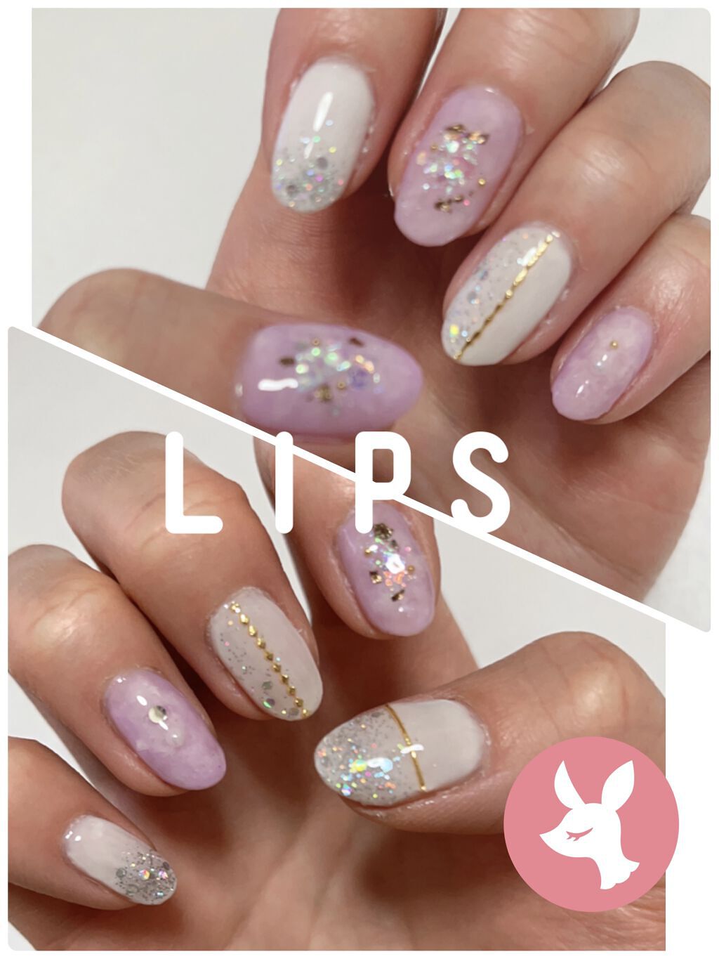 今回はこのネイルをしてみました!どうしても白っぽいネイルとくすみカラーを使いたくて紫はライトグレードとライトパープル?だったかな?とノンワイプトップコートを混ぜて作りました。水色もskyblueとライトグレー、ノンワイプトップコートを混ぜてく...