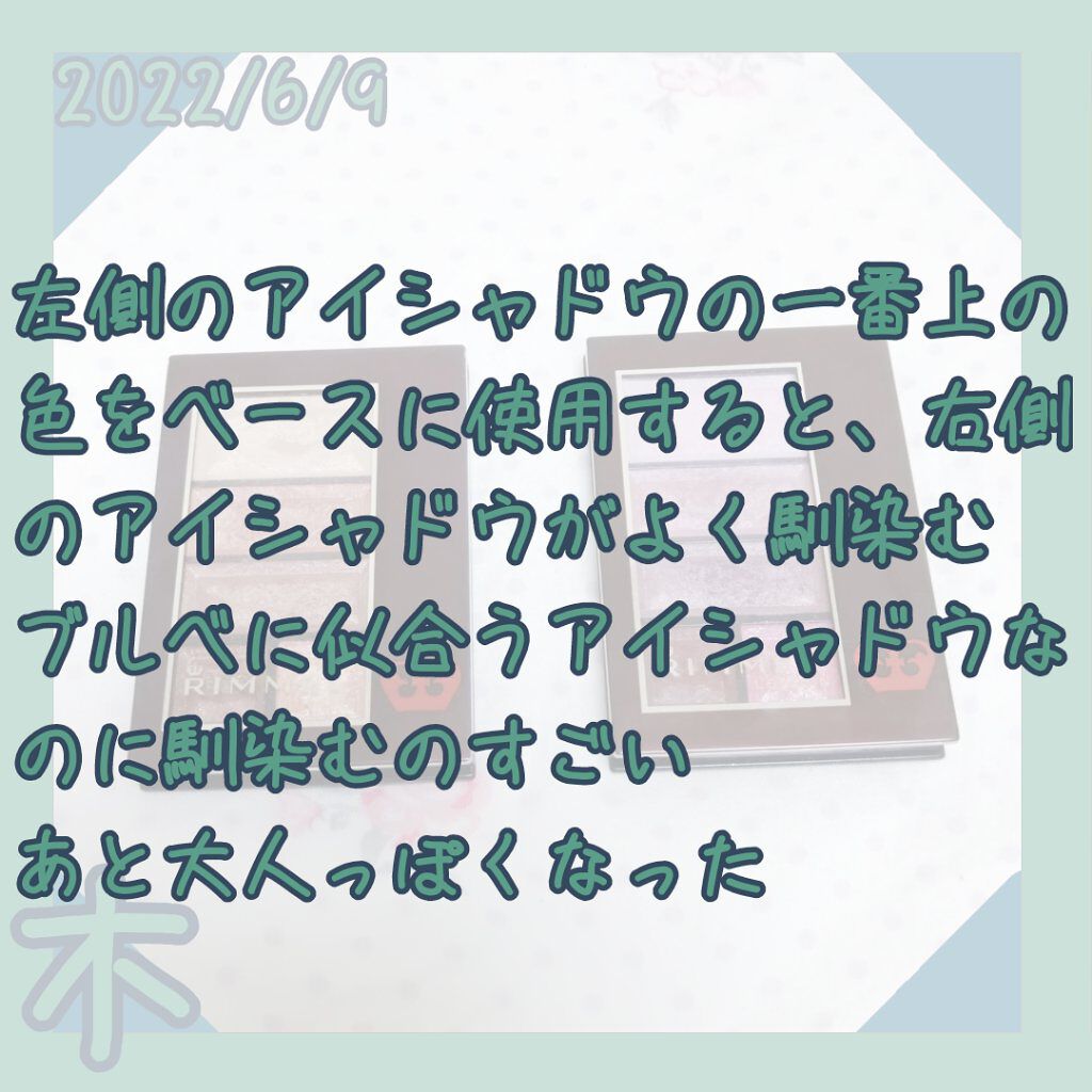 | 粉質はしっとりしててまぶたに綺麗に密着◎少量でもかなり発色してくれて色持ちもいい | 詳細を見る | ||