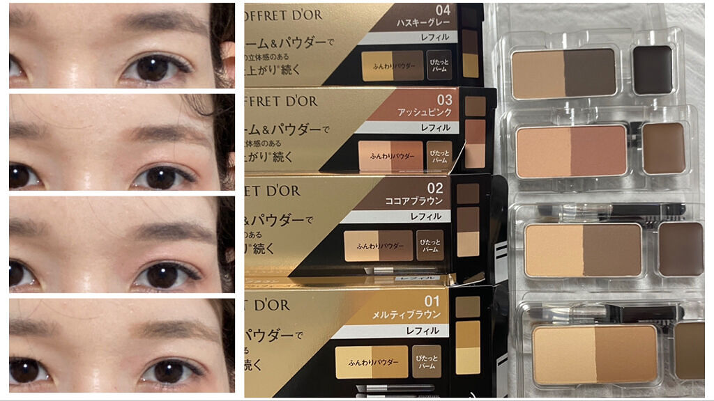 コフレドールのアイブロウがすごい!!😂全色レビューしたので見ていってね✨今までパウダーの仕上がりが好きなのに、持ちが良くないことに悩んでたんですよね、この眉毛ふんわり仕上がるのに、めっちゃ持ちがいい…🥺❤️二つの処方でできてて、初めにバームを...