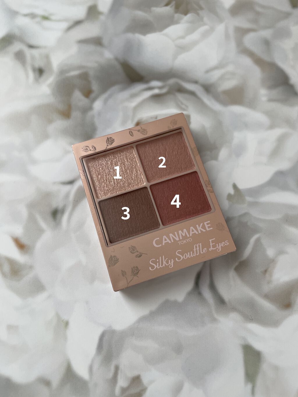 - シルキースフレアイズの姉妹品♡ 肌に溶け込むような透けマットシャドウ 透け感のある柔らかい仕上がりになるマット3色と、透け発色の繊細ラメ1色のパレットシャドウ♡ 完全マットアイや、ラメ×マットアイなど、メイクのパターンを楽しみましょう!