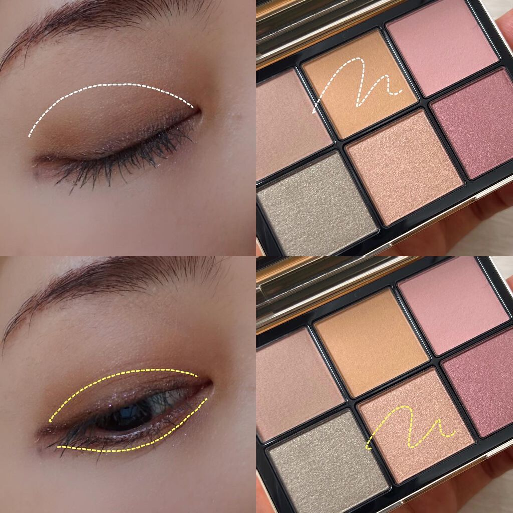 ひとつ990円(税込)というプチプラさもgood。 好きなカラー4つを組み合わせてオリジナルのパレットが作れるマキアージュのアイシャドウ。 全25色4タイプから、定番色の21色をスウォッチしてみました! PK102 ピーチプラリネは、ほんのりピンクでまぶたトーンUP。アイシャドウベースとして使うのがお気に入り!LUNASOLのアイシャドウベースが好きな方はこちらも好きだと思う♡うすく伸ばせばヨレないです! その他、私のお気に入りは ◽OR531 ショコラオランジュ ◽BE212 クリームミルクティ(パール) ◽BR313 マロンロシェ(パール) ◽RD518 ブリックショコラ(マット)かな。 全色を使って、メイク5パターンしていきたいと思います〜!