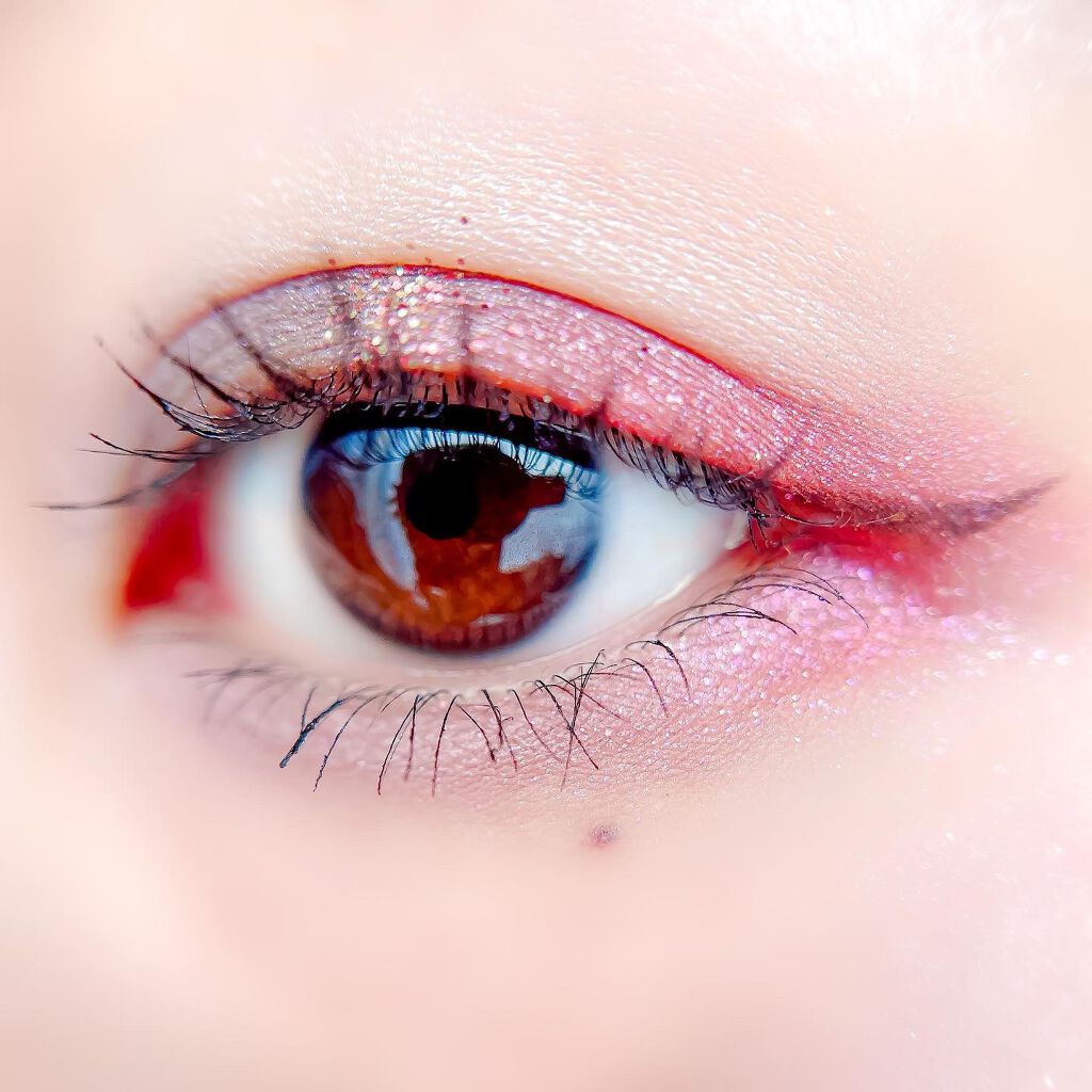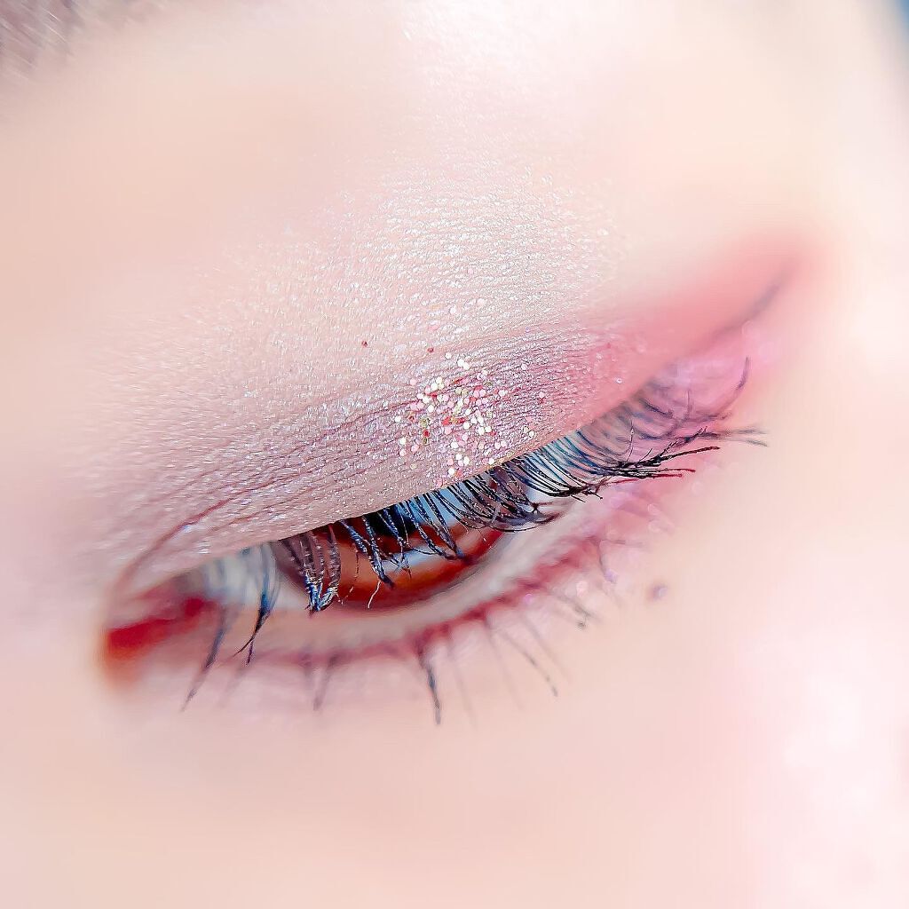 ピンクにグレージュも良いですね👌💗 今日は可愛らしい感じにしてみました💕 上下瞼黒目〜目頭側にラメを塗ってキラキラさせております🤩 目尻はマットのピンクを濃いめに重ねて💗 グレージュのアイライナーと相性◎