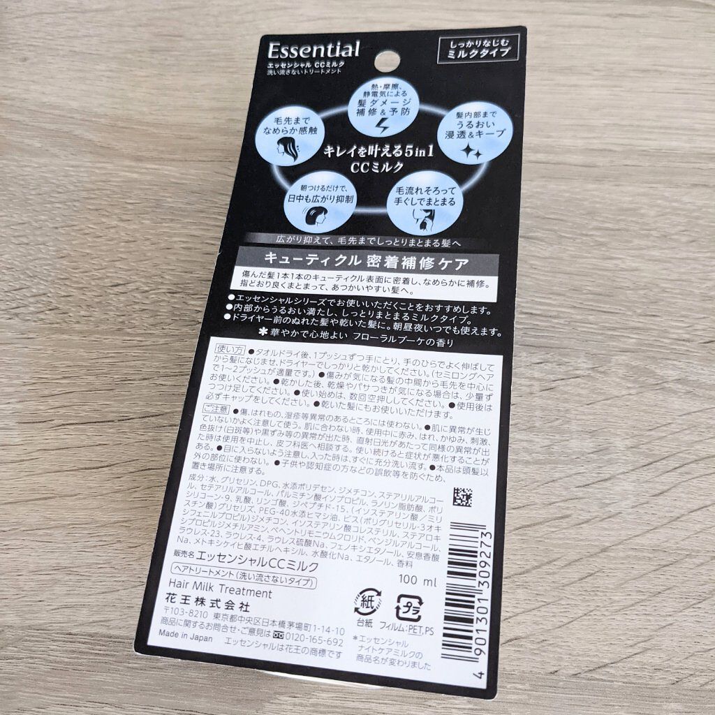 エッセンシャルCCミルク『広がり抑えて、毛先までしっとりまとまる髪へ』キレイを叶える5in1🤍①熱・ダメージによる髪ダメージ補修&予防②うるおい浸透&キープ③毛先までなめらか④日中も広がり抑制⑤手ぐしでまとまる・キューティクル密着補修ケア・内...
