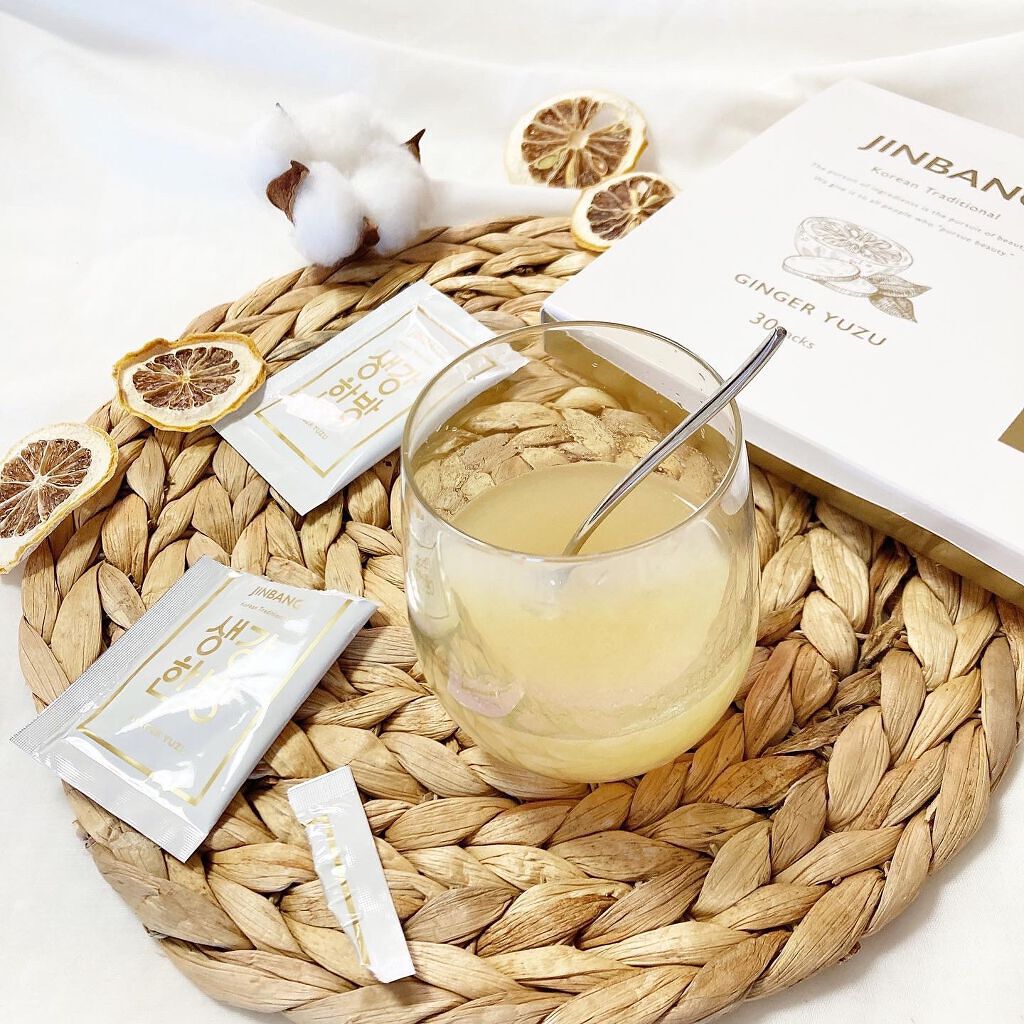 韓国式の置き換えハンバンダイエット✨ 朝食・昼食・夜食のどこか1食をJINBANGに置き換えるだけなのでとっても簡単🙆🏻♀️ 1食たったの12kcalと低カロリー♪ 水またはお湯で溶かすだけなので、時間をかけずに手軽に作れるのが嬉しい! 韓国の美容健康食品として人気の和漢成分や、乳酸菌2億個、ヒアルロン酸、ビタミンDなど、嬉しい成分がぎゅっと詰まっています😍 味はジンジャーゆず味🍊 このまま飲むのももちろん良いけど、アレンジしても美味しそうだなぁ!